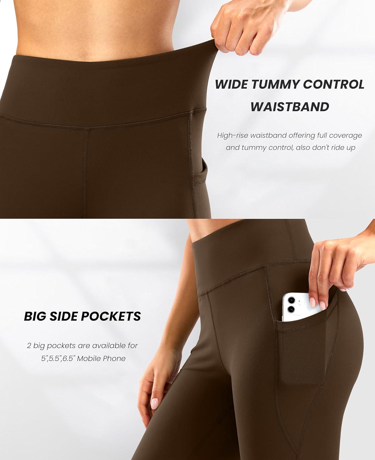 28″/30″/32″/34″ Inseam Women’s Bootcut Yoga Pants Long Bootleg High-Waisted Flare Pants with Pockets(Coffee Brown)