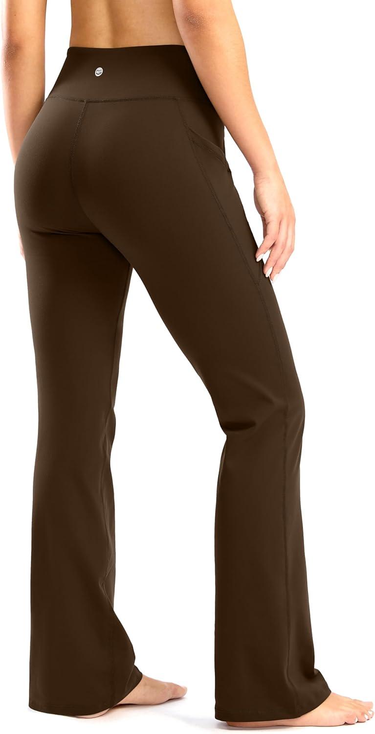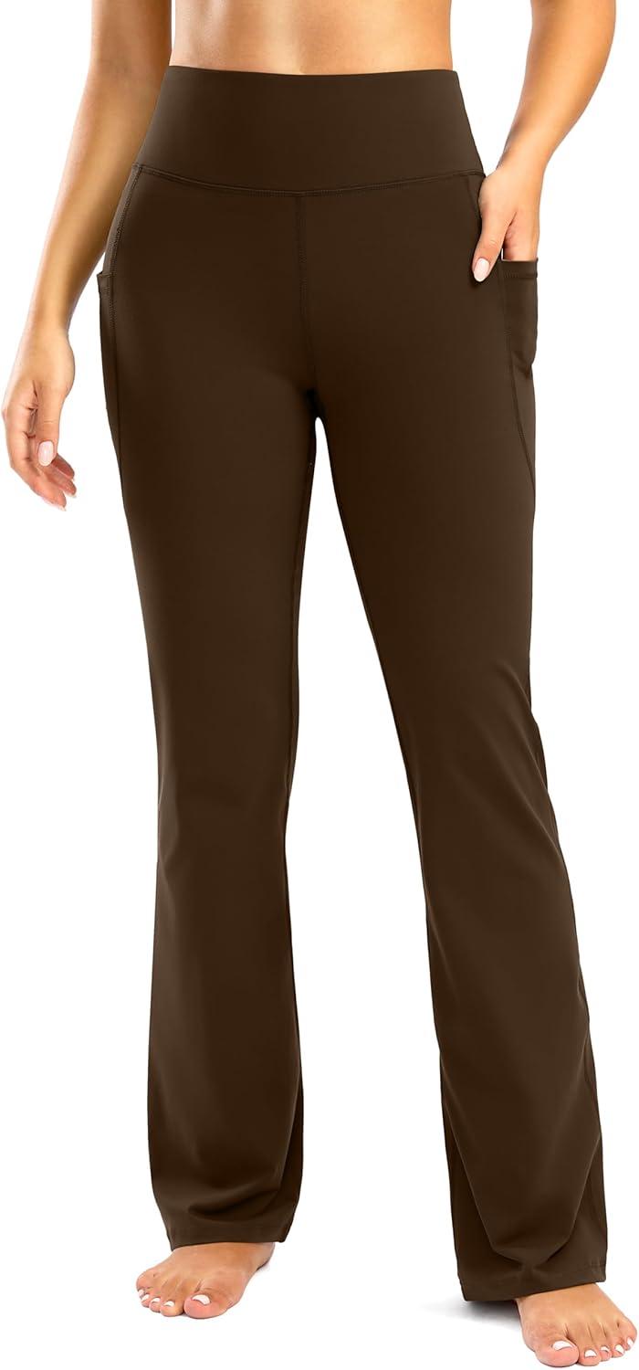 28"/30"/32"/34" Inseam Women's Bootcut Yoga Pants Long Bootleg High-Waisted Flare Pants with Pockets(Coffee Brown)