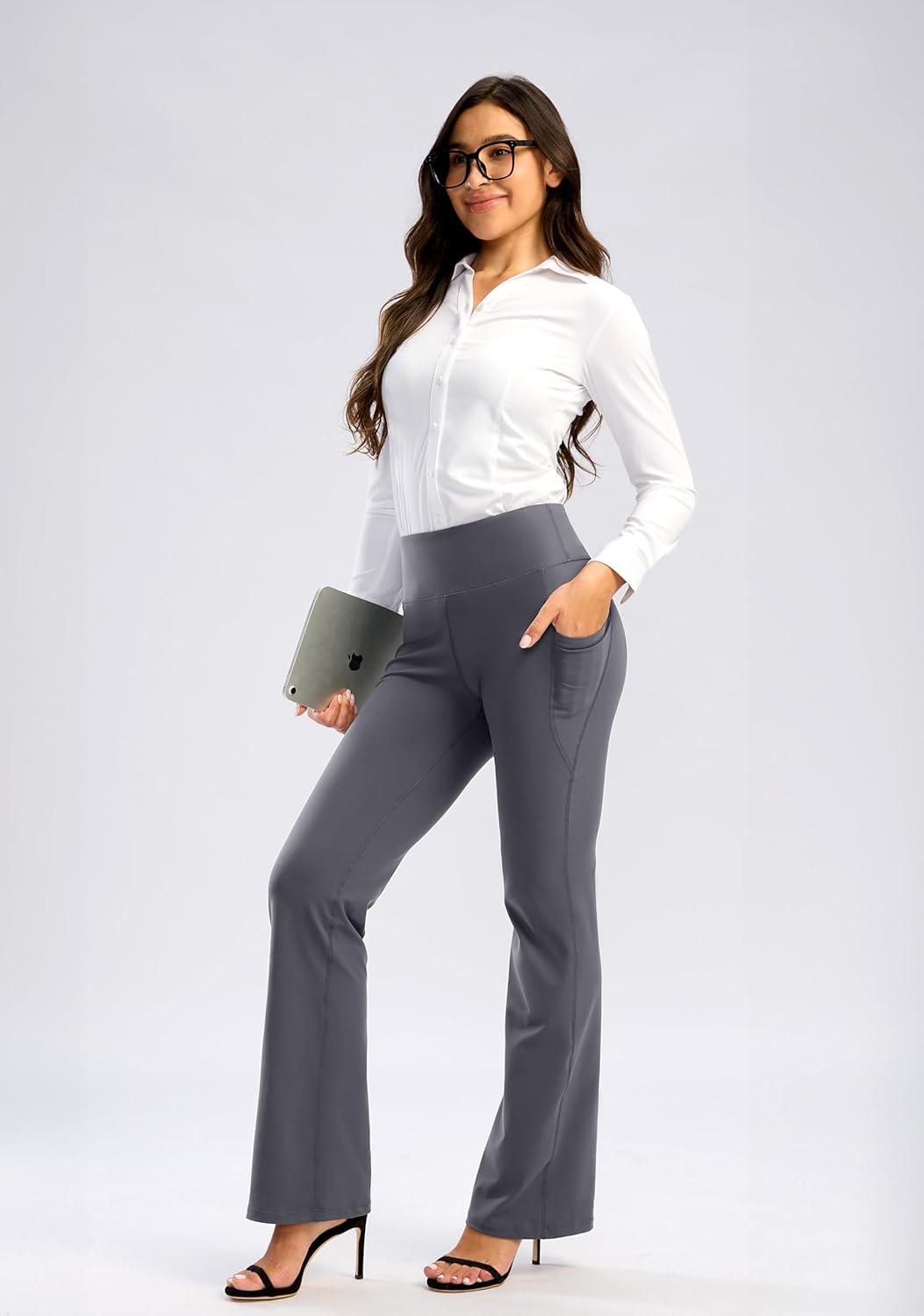 28"/30"/32"/34" Inseam Women's Bootcut Yoga Pants Long Bootleg High-Waisted Flare Pants with Pockets(Grey)