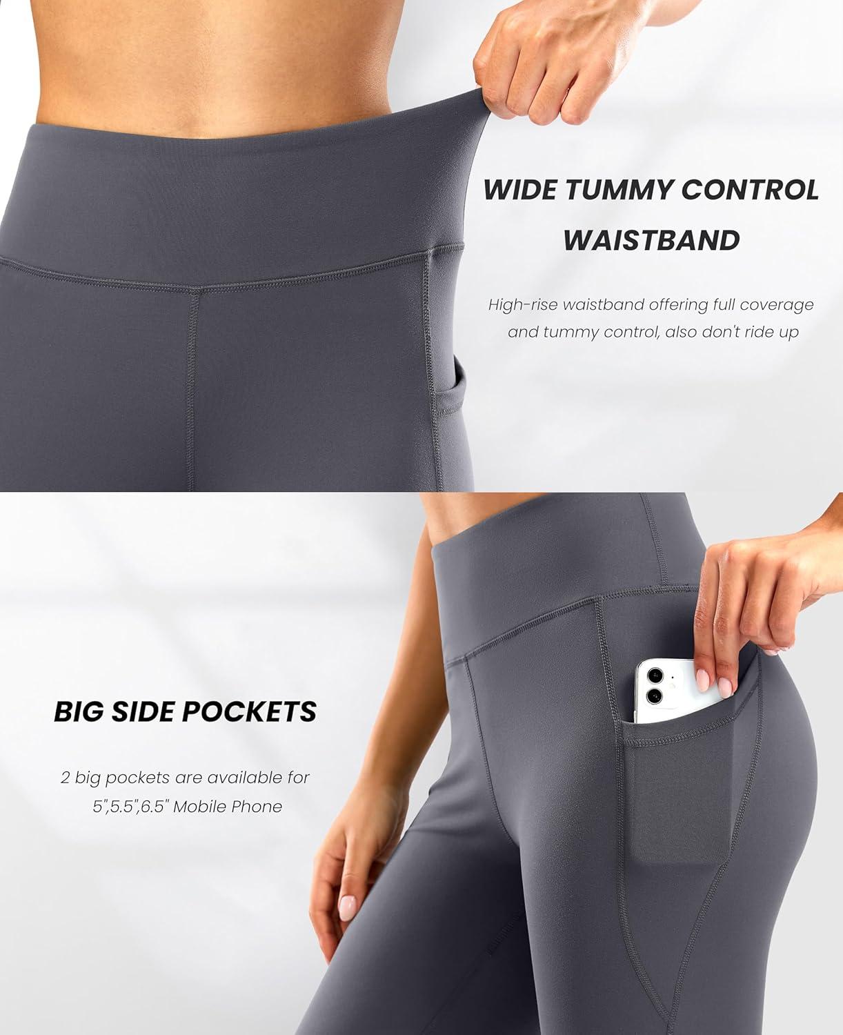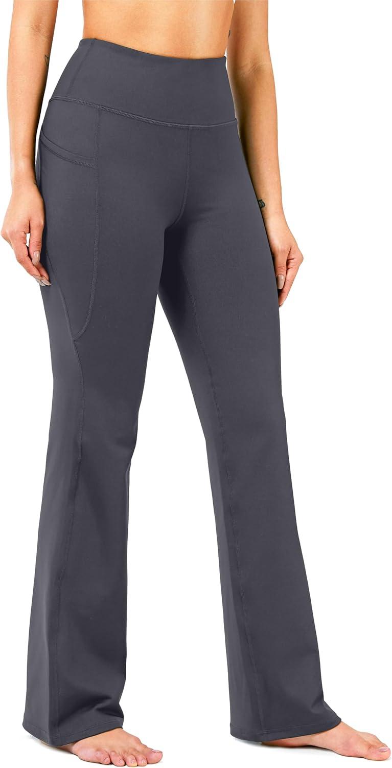 28″/30″/32″/34″ Inseam Women’s Bootcut Yoga Pants Long Bootleg High-Waisted Flare Pants with Pockets(Grey)