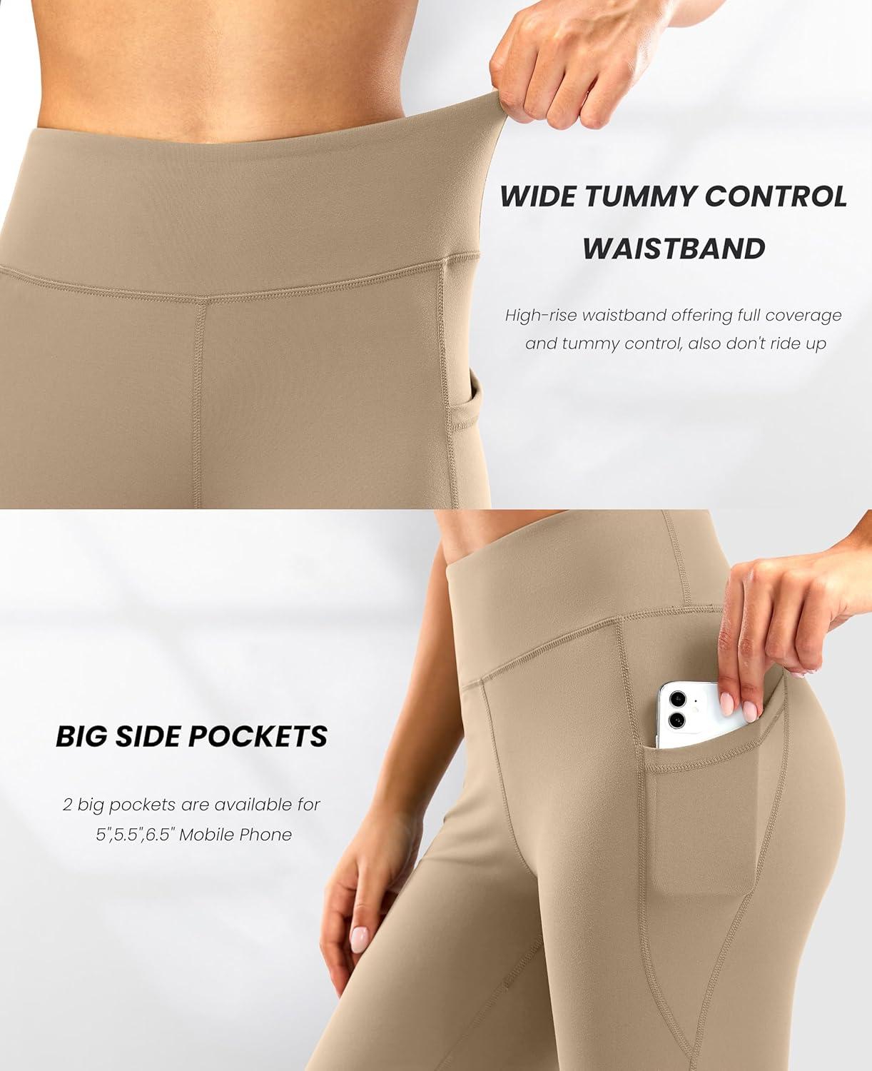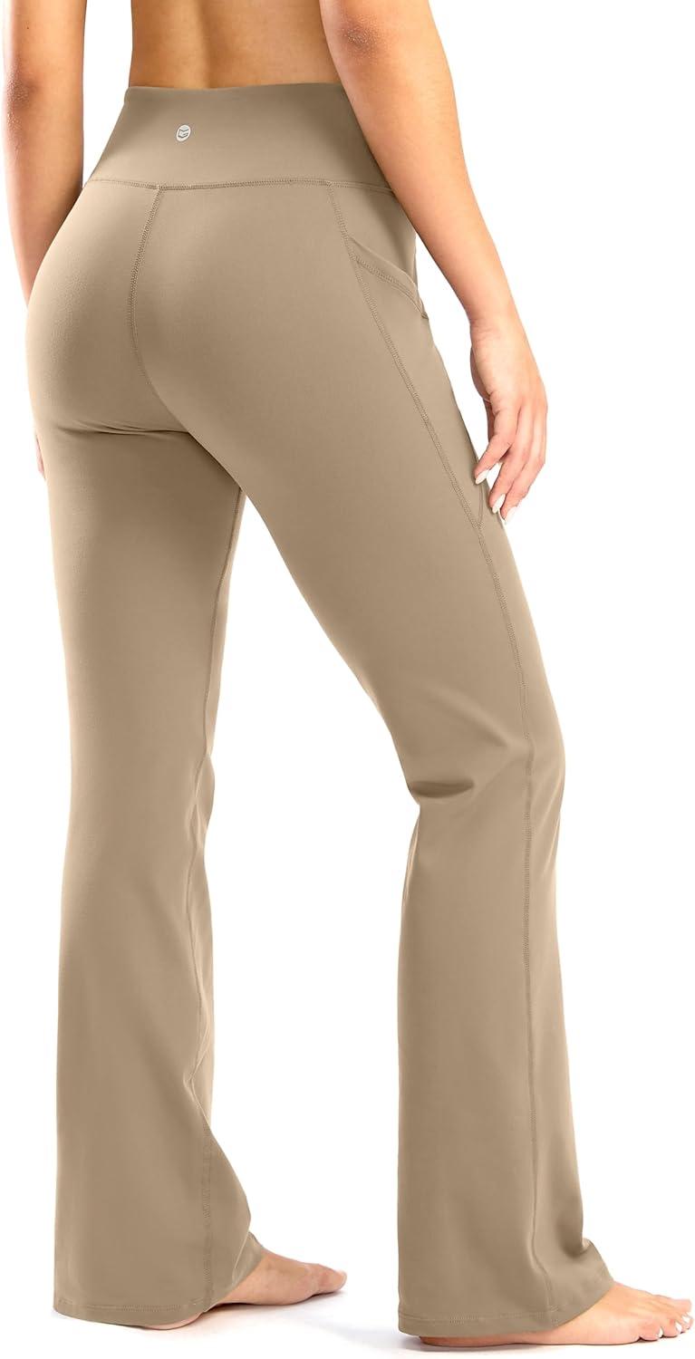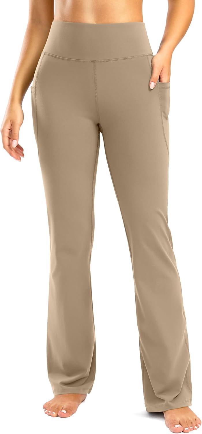 28″/30″/32″/34″ Inseam Women’s Bootcut Yoga Pants Long Bootleg High-Waisted Flare Pants with Pockets(Khaki)