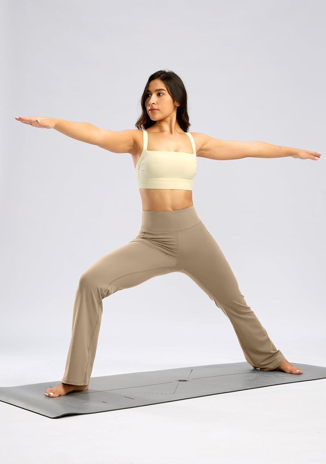 28"/30"/32"/34" Inseam Women's Bootcut Yoga Pants Long Bootleg High-Waisted Flare Pants with Pockets(Khaki)