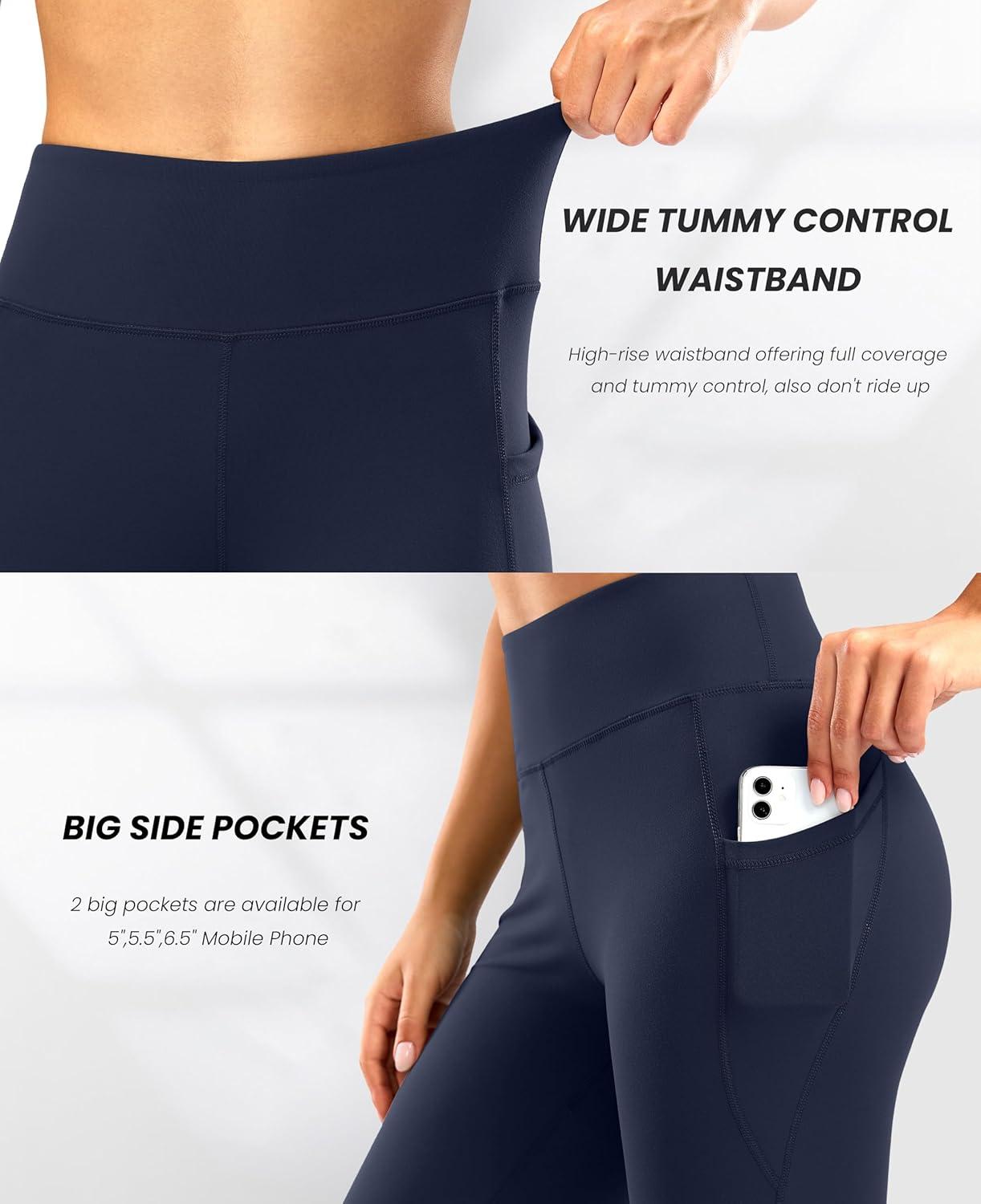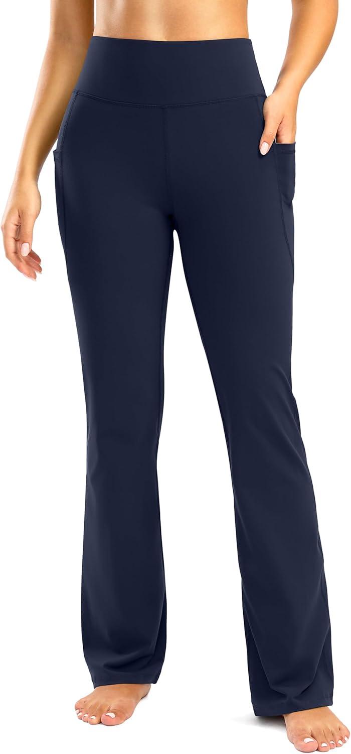 28″/30″/32″/34″ Inseam Women’s Bootcut Yoga Pants Long Bootleg High-Waisted Flare Pants with Pockets(Navy)