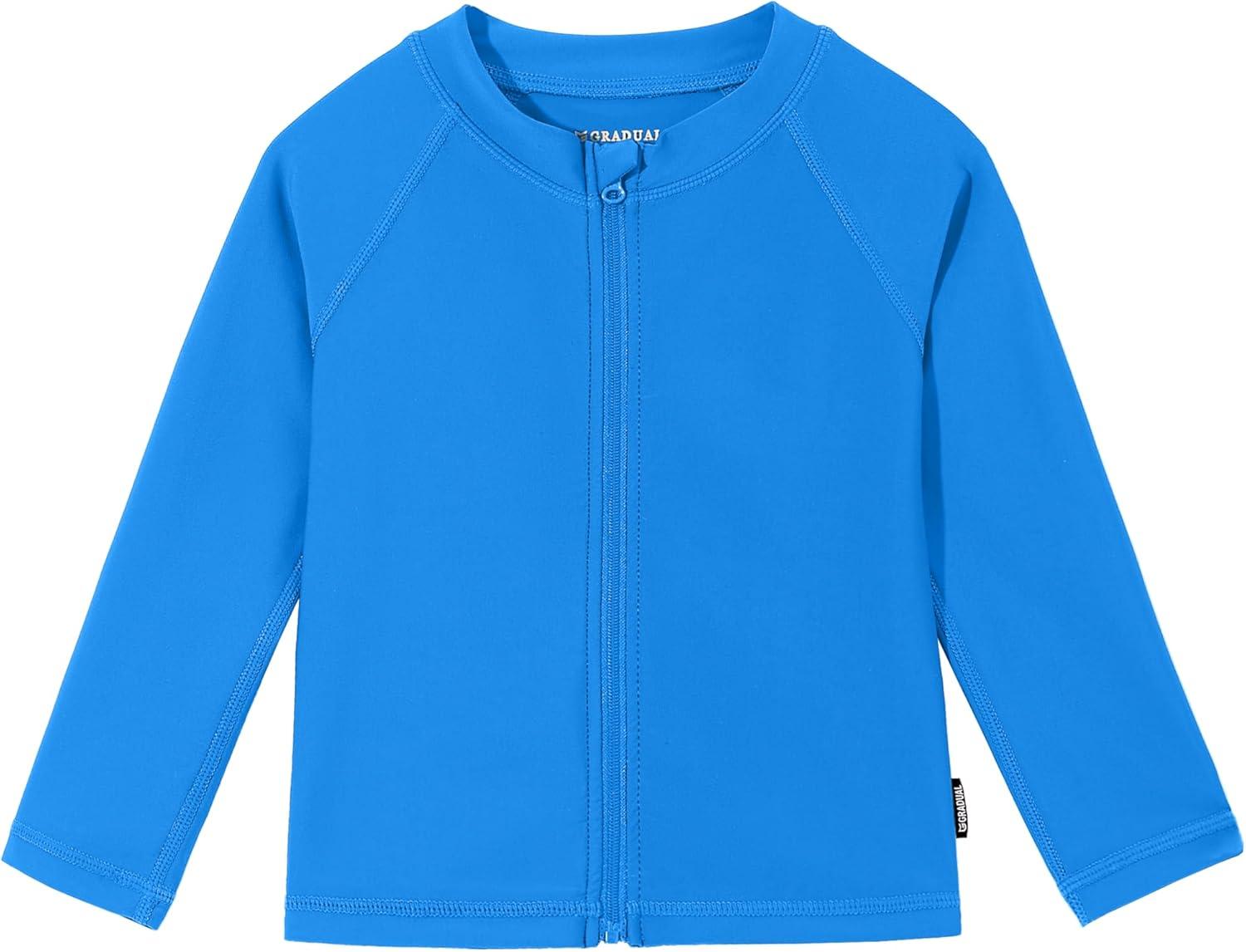 Boys Toddler Rash Guard Long Sleeve UPF 50+ Sun Protection Lightweight Swim Shirt for Baby Kids(Brilliant Blue)