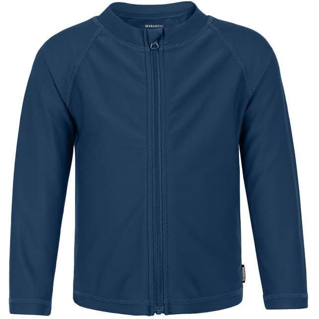 Boys Toddler Rash Guard Long Sleeve UPF 50+ Sun Protection Lightweight Swim Shirt for Baby Kids(Dark Blue)