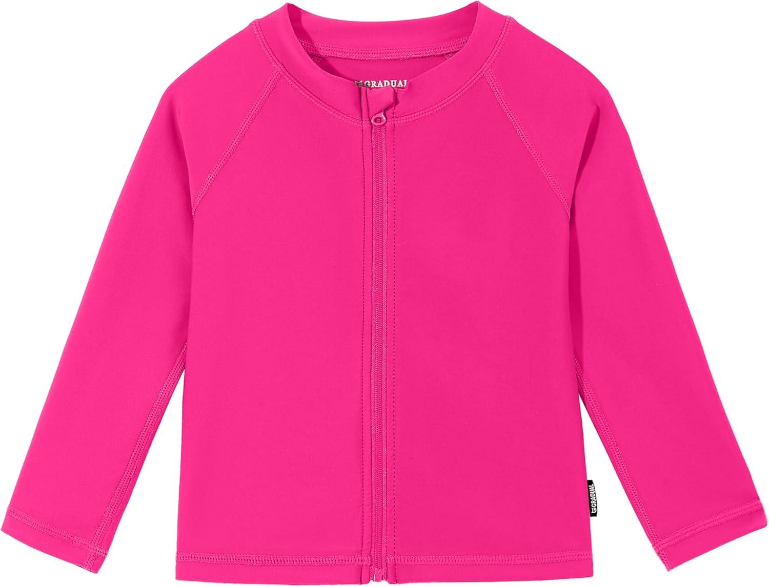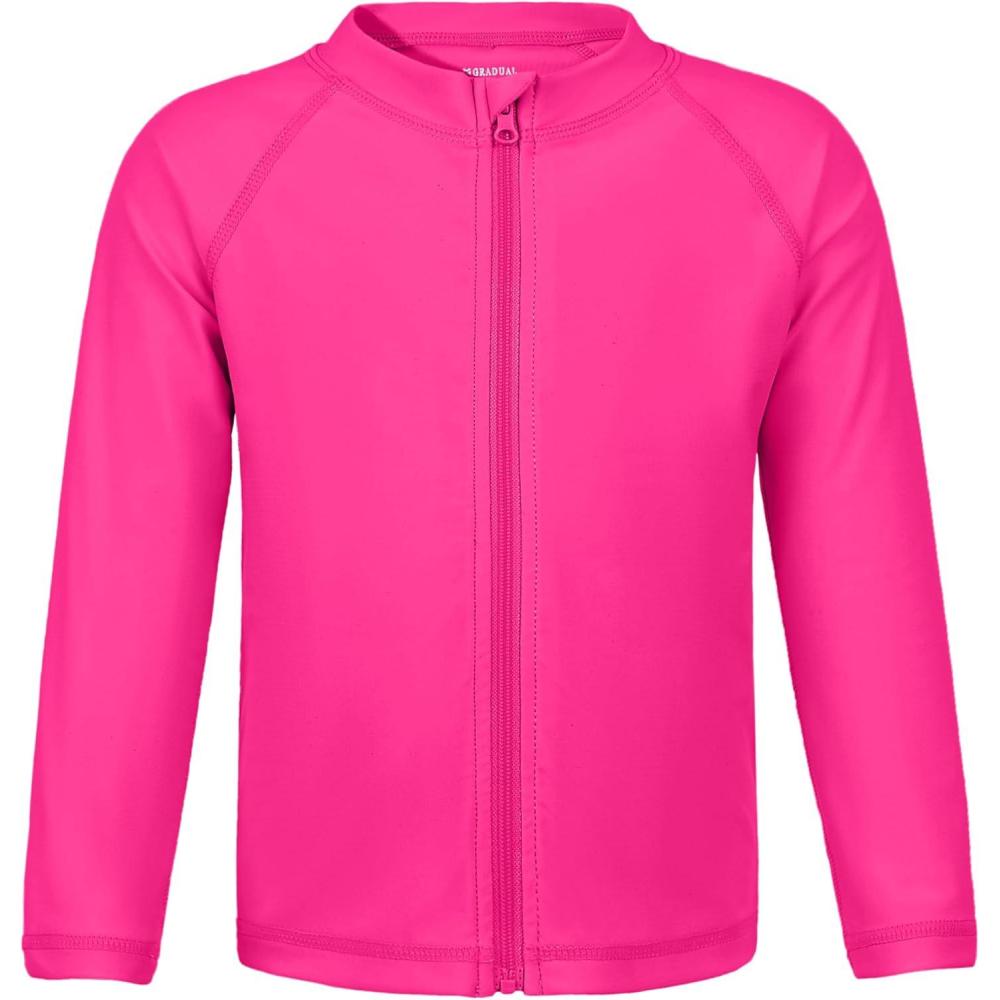 Boys Toddler Rash Guard Long Sleeve UPF 50+ Sun Protection Lightweight Swim Shirt for Baby Kids(Hot Pink)