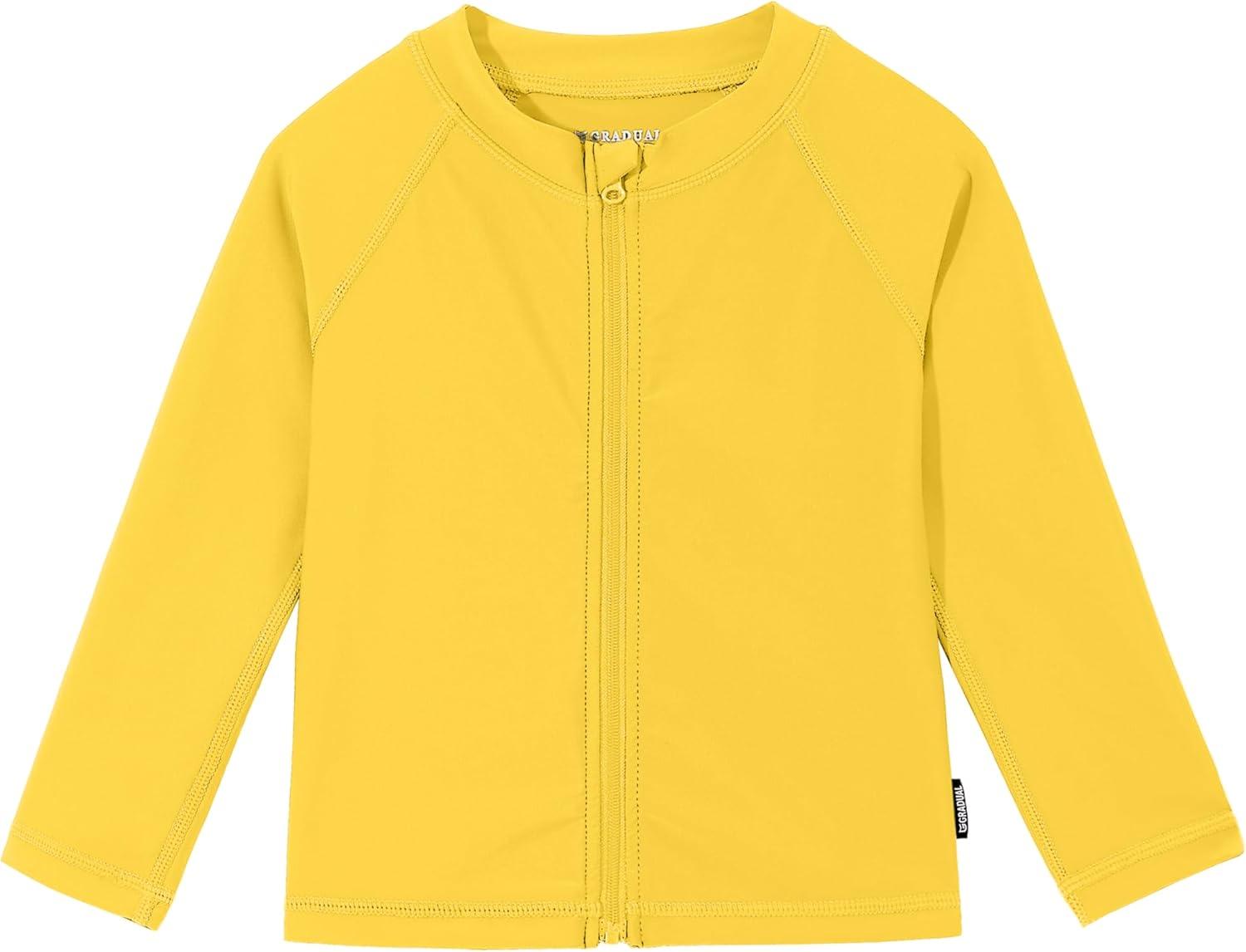 Boys Toddler Rash Guard Long Sleeve UPF 50+ Sun Protection Lightweight Swim Shirt for Baby Kids(Yellow)