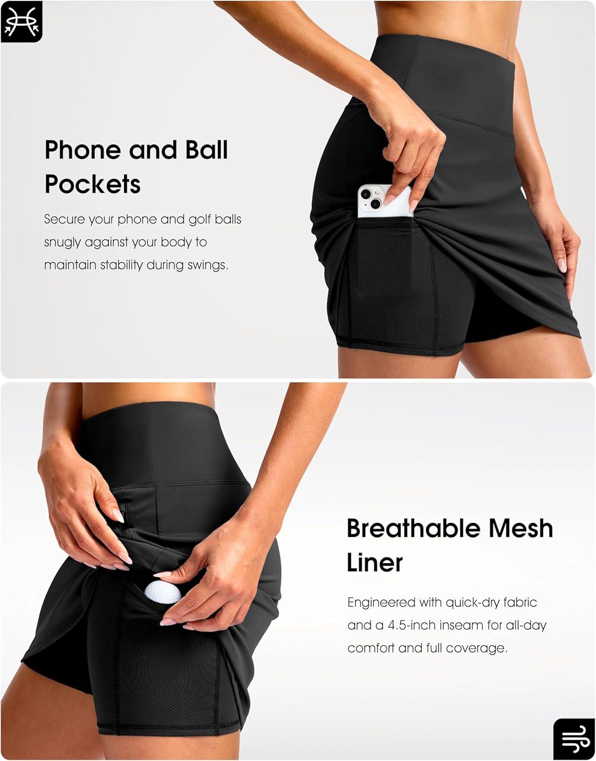 G Gradual 18″ Golf Skirts for Women Zipper Pockets Knee Length Skort with Shorts Underneath High Waist Tennis Pickleball(Black)