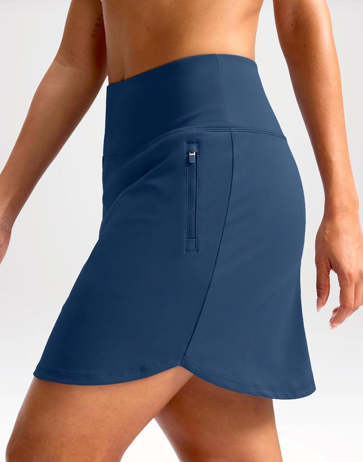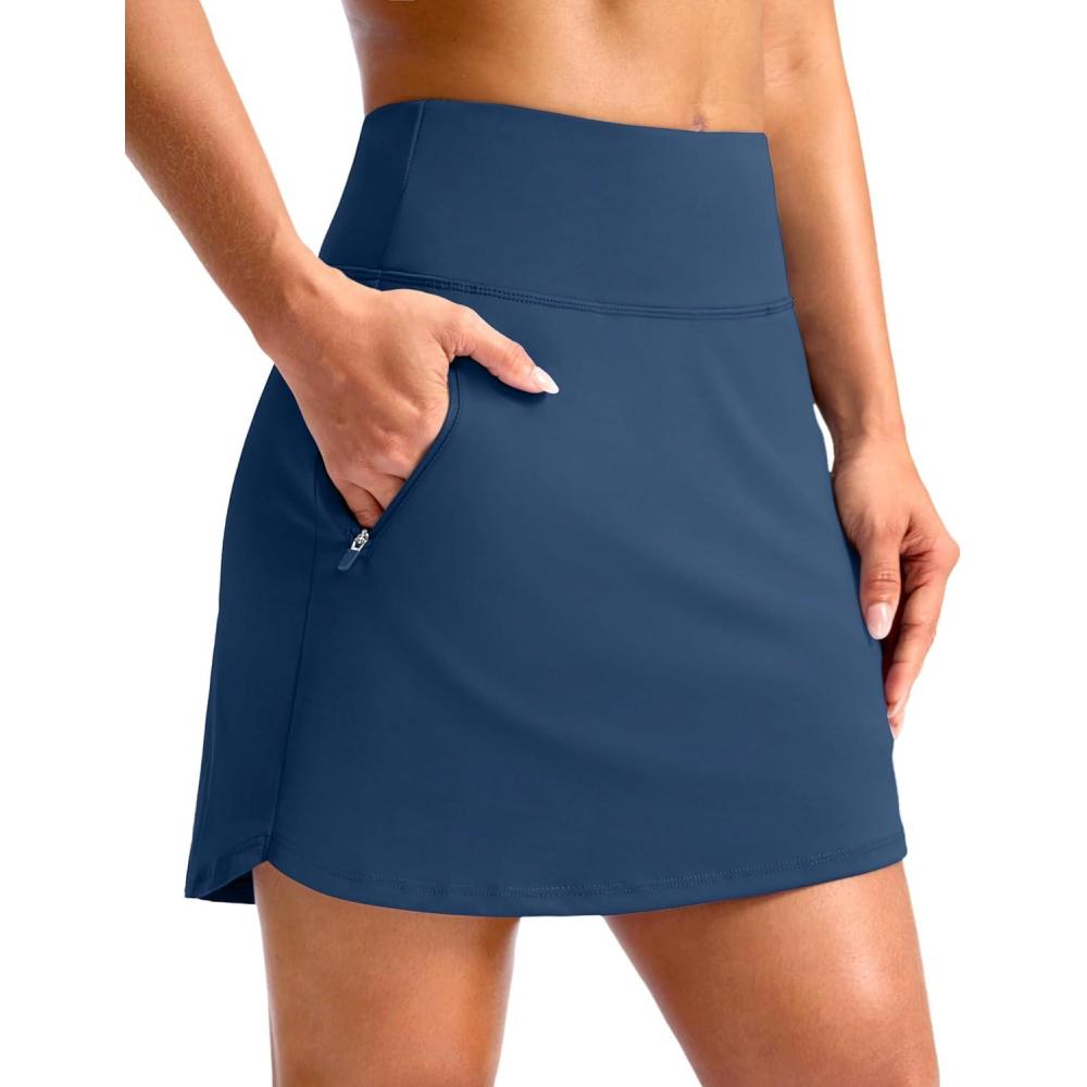 G Gradual 18″ Golf Skirts for Women Zipper Pockets Knee Length Skort with Shorts Underneath High Waist Tennis Pickleball(Blue)