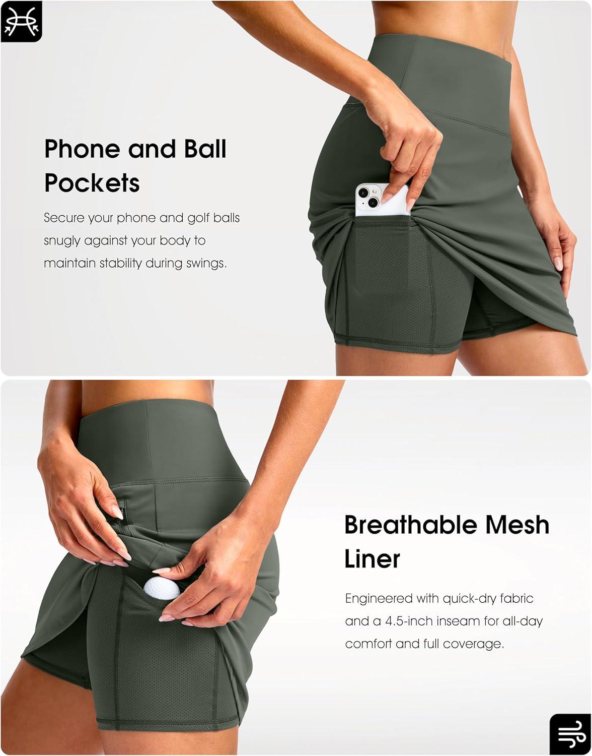 G Gradual 18″ Golf Skirts for Women Zipper Pockets Knee Length Skort with Shorts Underneath High Waist Tennis Pickleball(Sage Green)