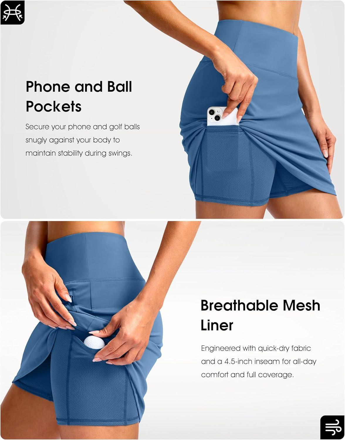 G Gradual 18″ Golf Skirts for Women Zipper Pockets Knee Length Skort with Shorts Underneath High Waist Tennis Pickleball(Slate Blue)