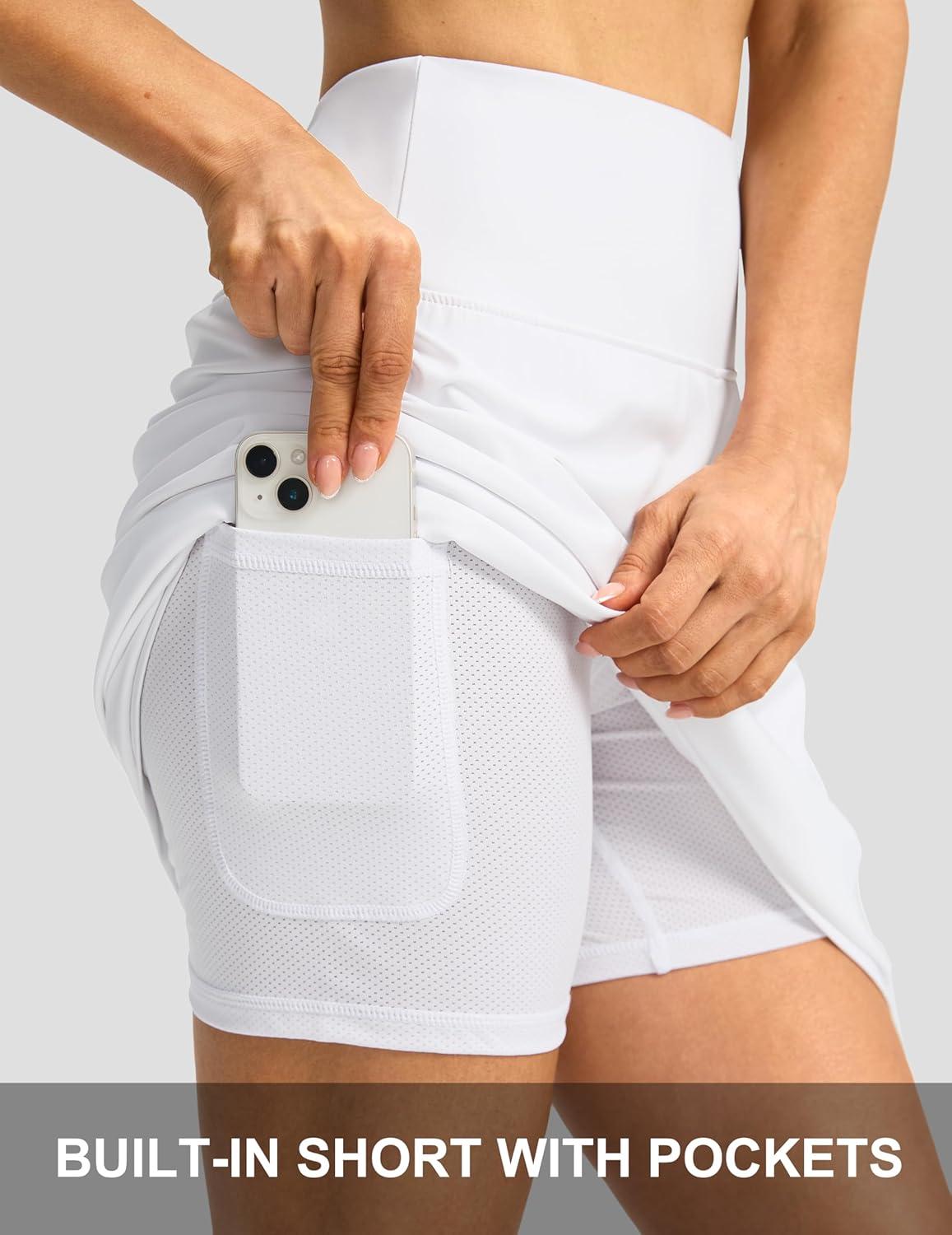 G Gradual 19″ Skorts for Woman Knee Length Golf Skirt Long Athletic Tennis Skorts for Women Dressy Casual with Shorts Pockets(A-white)