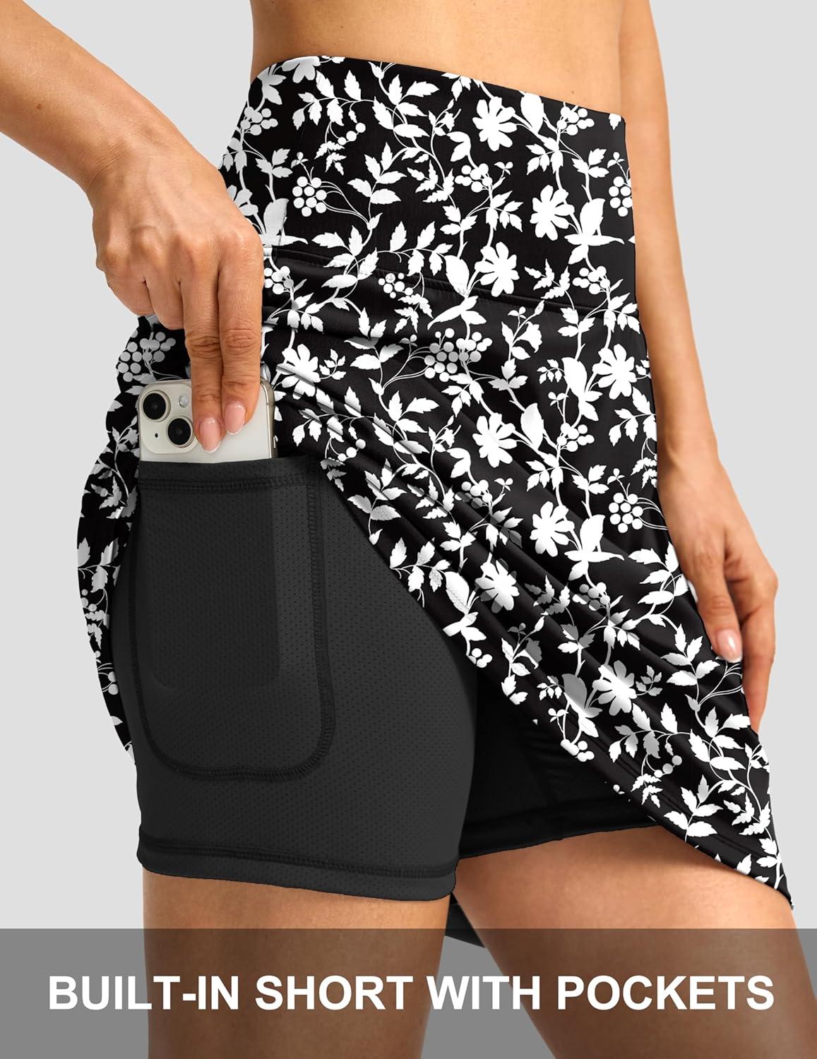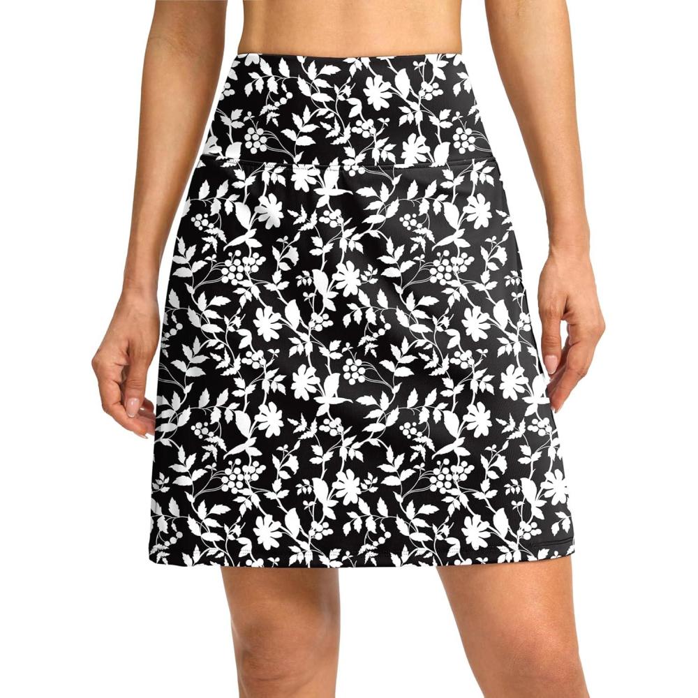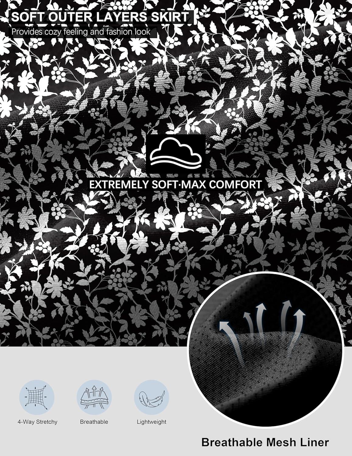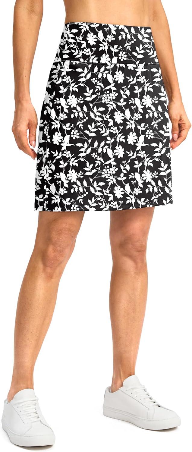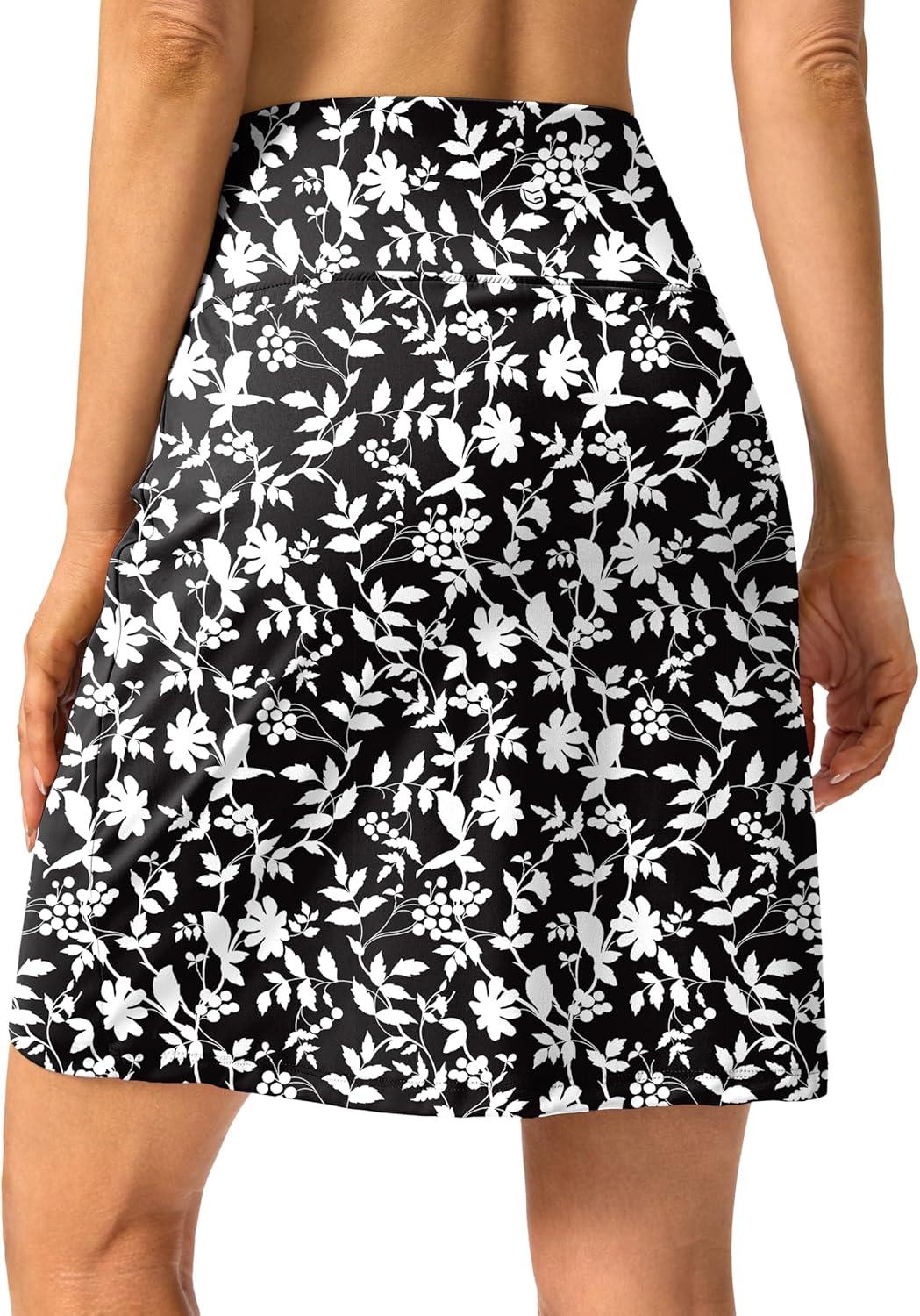 G Gradual 19" Skorts for Woman Knee Length Golf Skirt Long Athletic Tennis Skorts for Women Dressy Casual with Shorts Pockets(Black Flower)