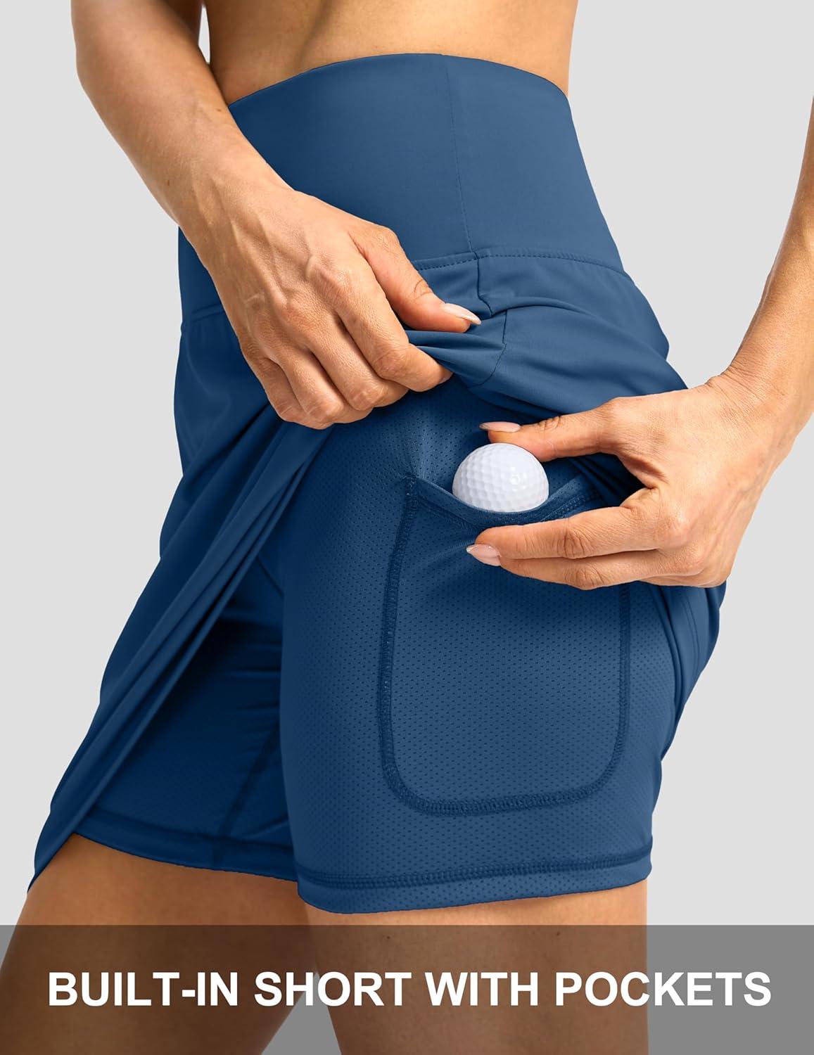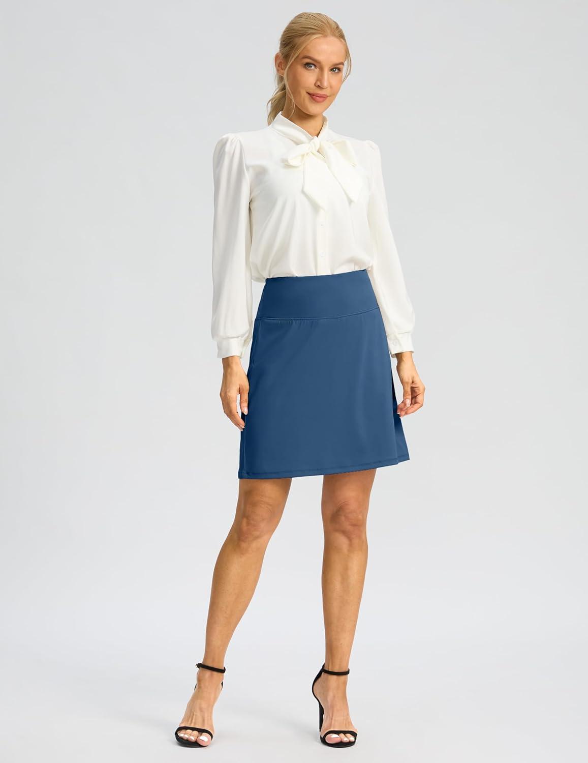 G Gradual 19″ Skorts for Woman Knee Length Golf Skirt Long Athletic Tennis Skorts for Women Dressy Casual with Shorts Pockets(Blue)
