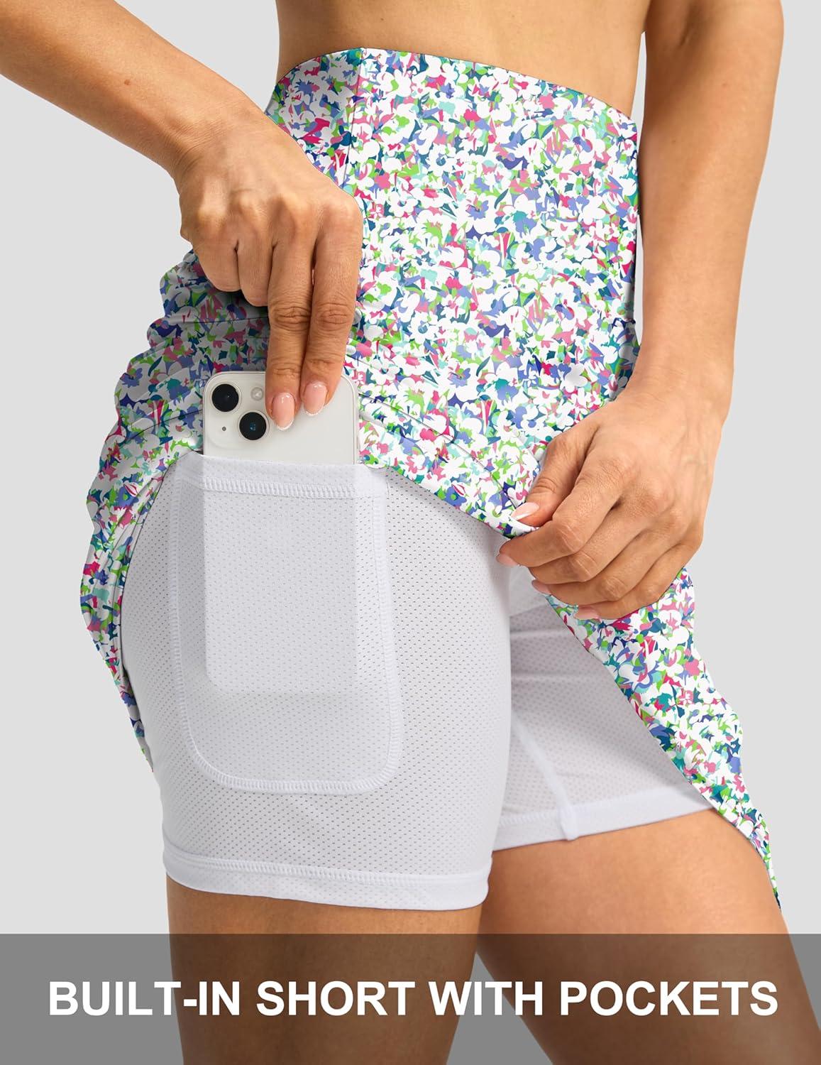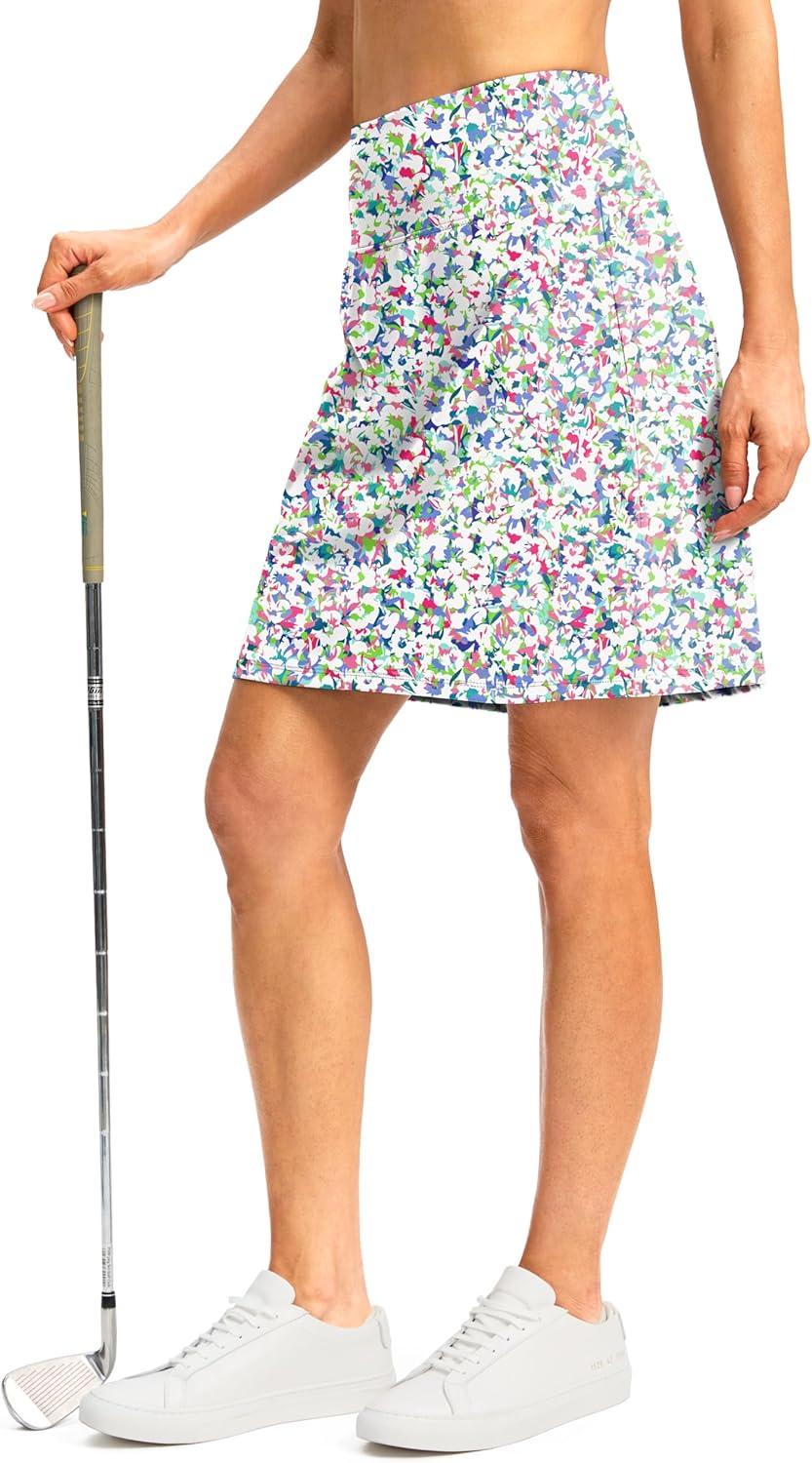 G Gradual 19″ Skorts for Woman Knee Length Golf Skirt Long Athletic Tennis Skorts for Women Dressy Casual with Shorts Pockets(Colorful Flower)