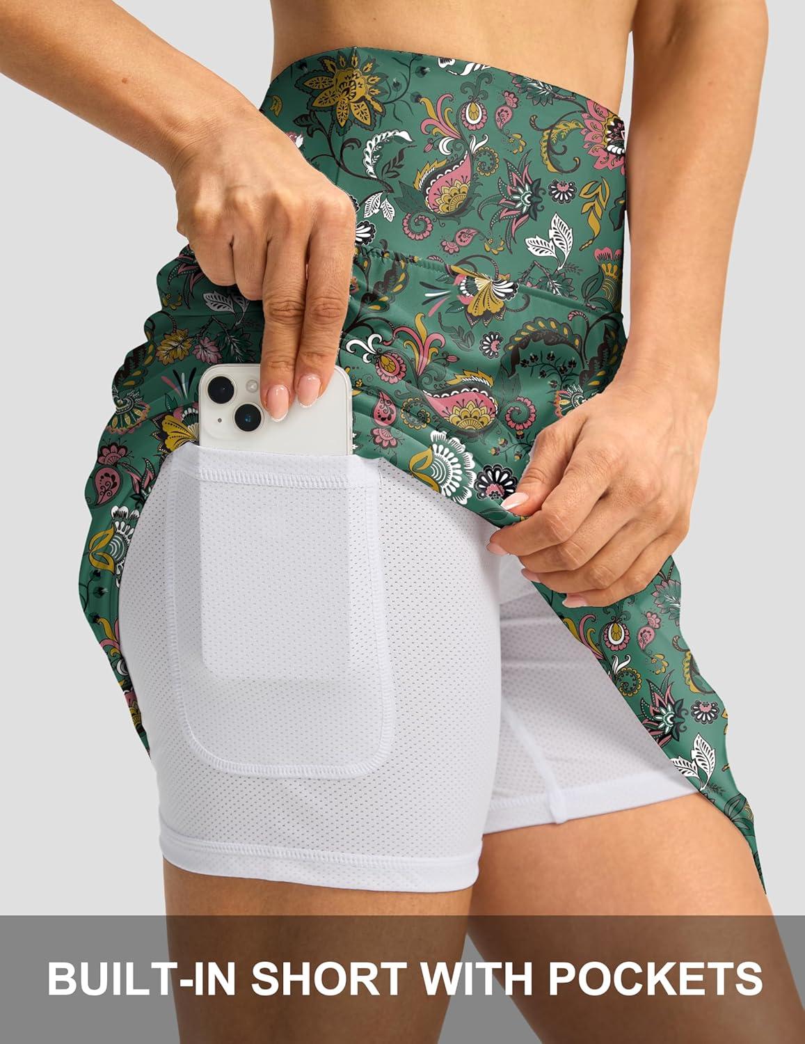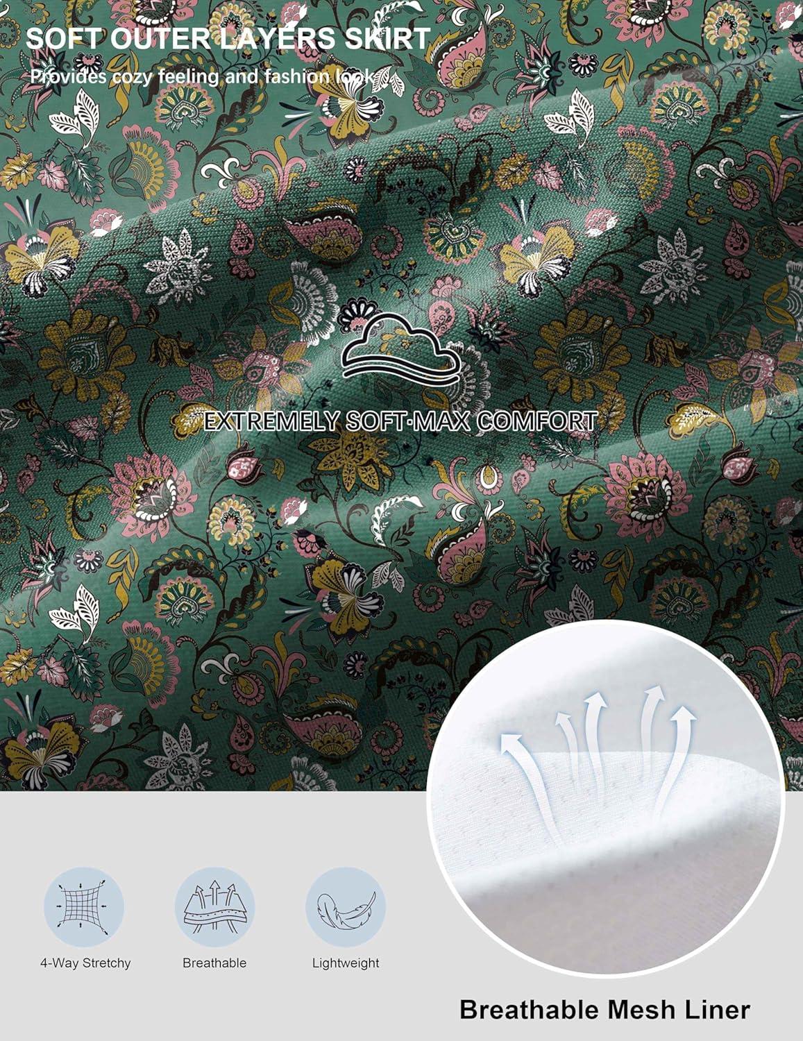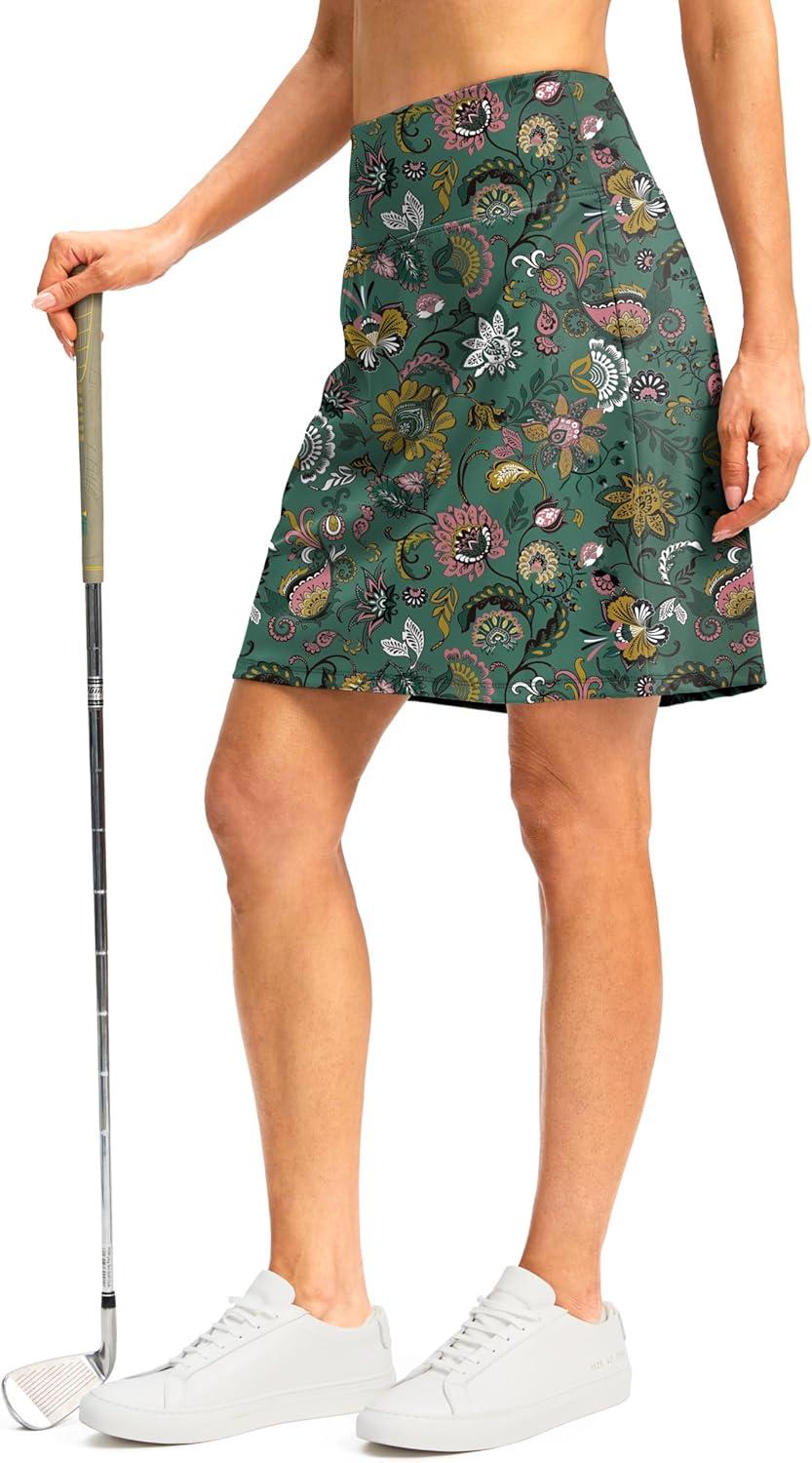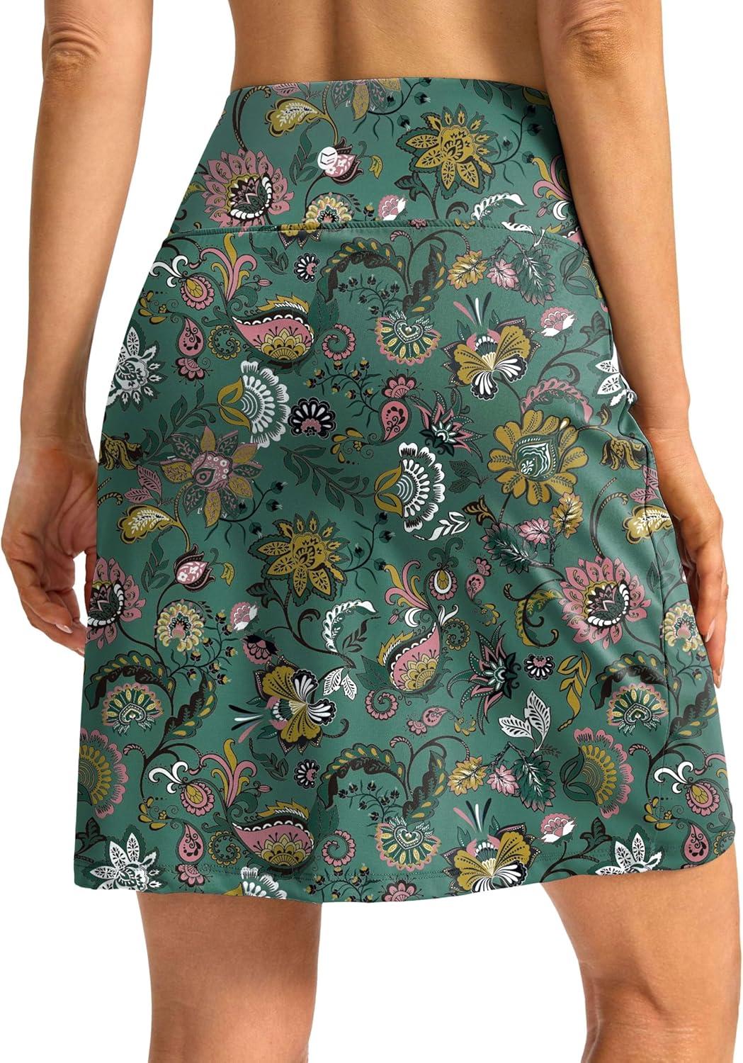 G Gradual 19″ Skorts for Woman Knee Length Golf Skirt Long Athletic Tennis Skorts for Women Dressy Casual with Shorts Pockets(Green Indigo)