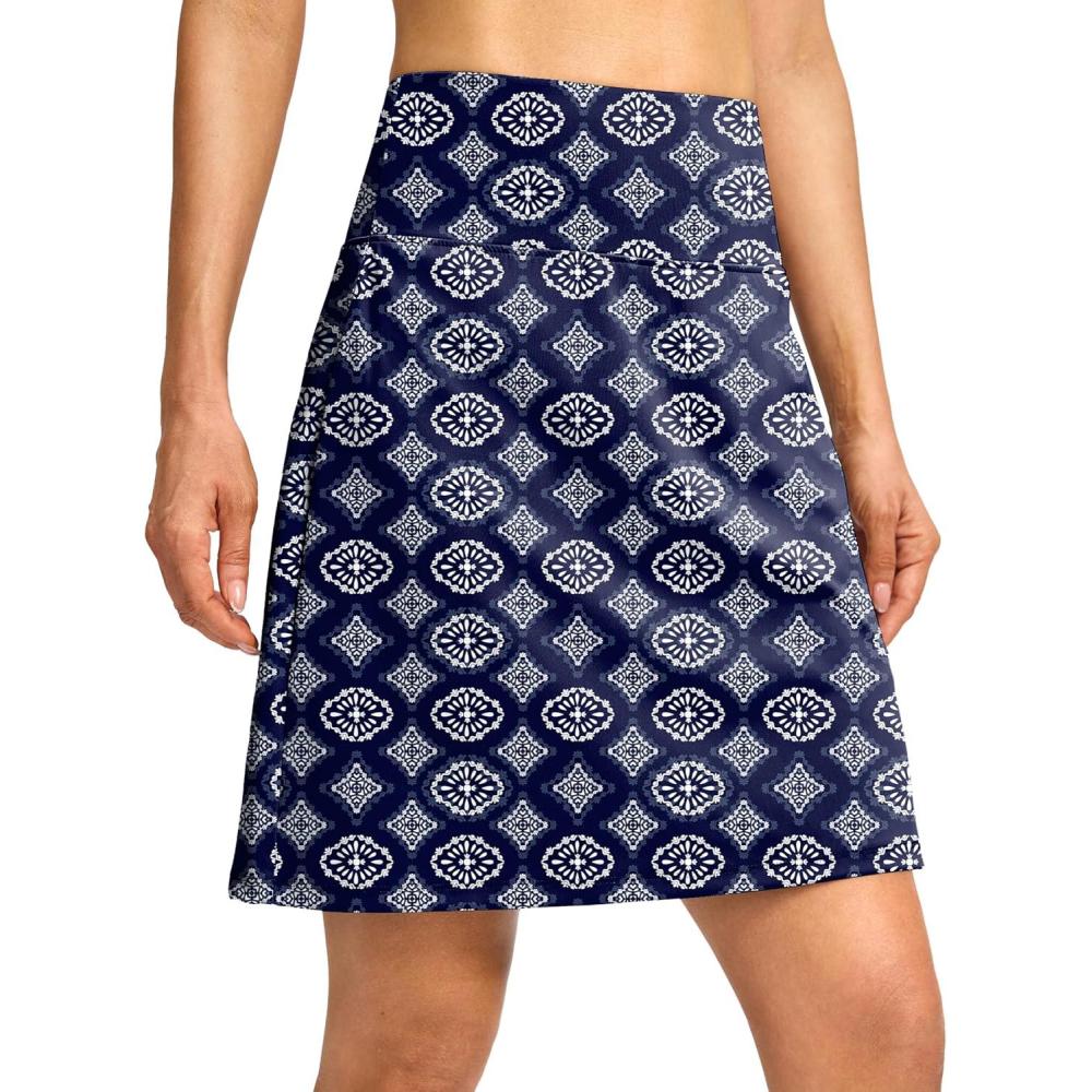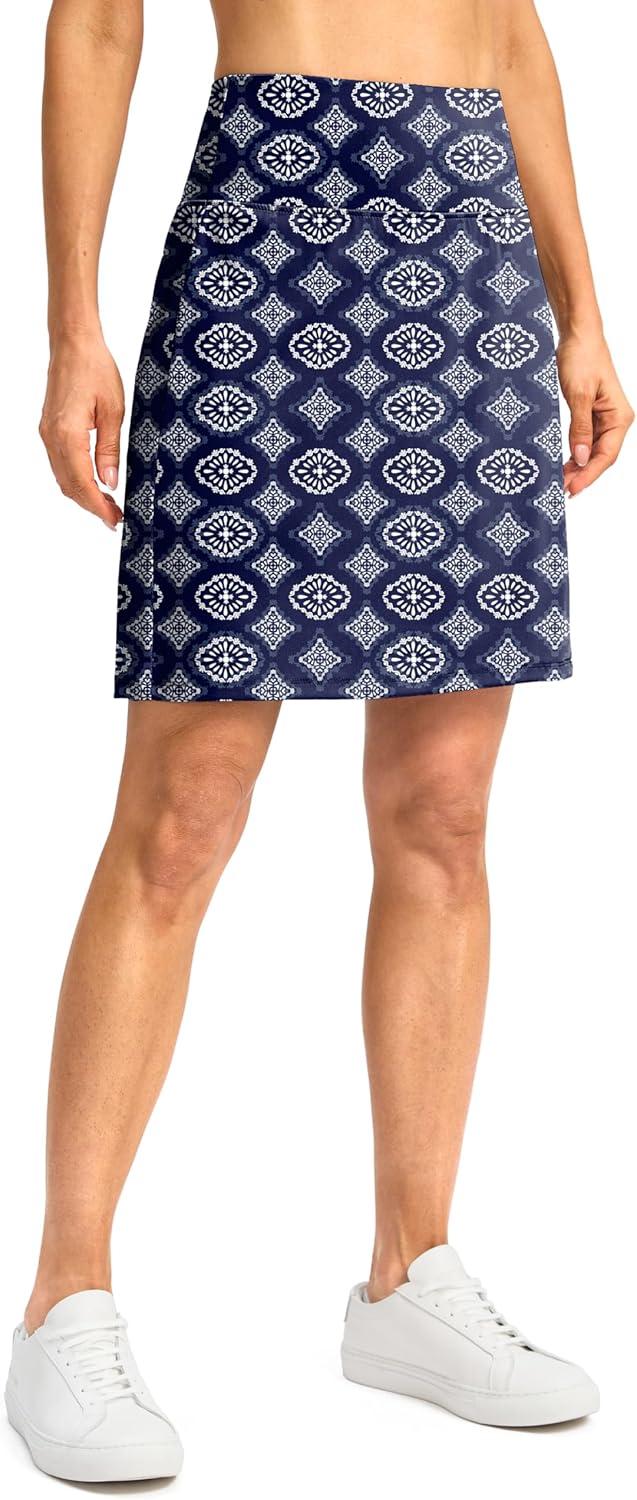 G Gradual 19" Skorts for Woman Knee Length Golf Skirt Long Athletic Tennis Skorts for Women Dressy Casual with Shorts Pockets(Navy Flower)