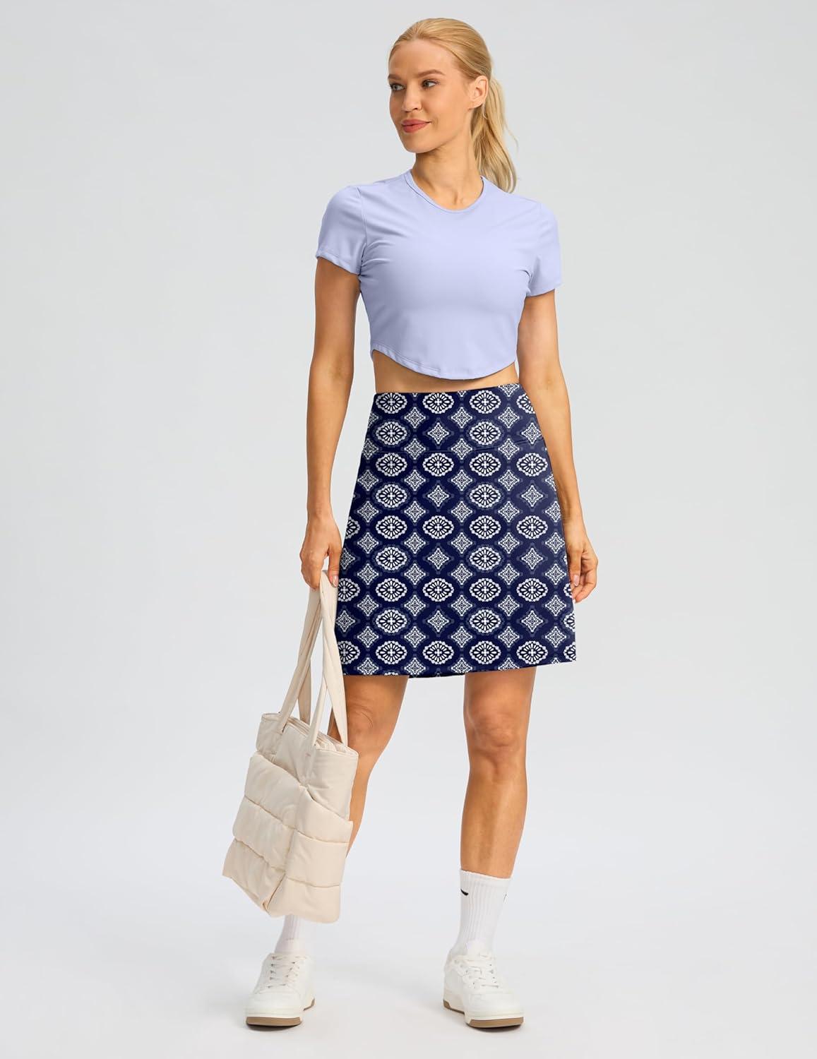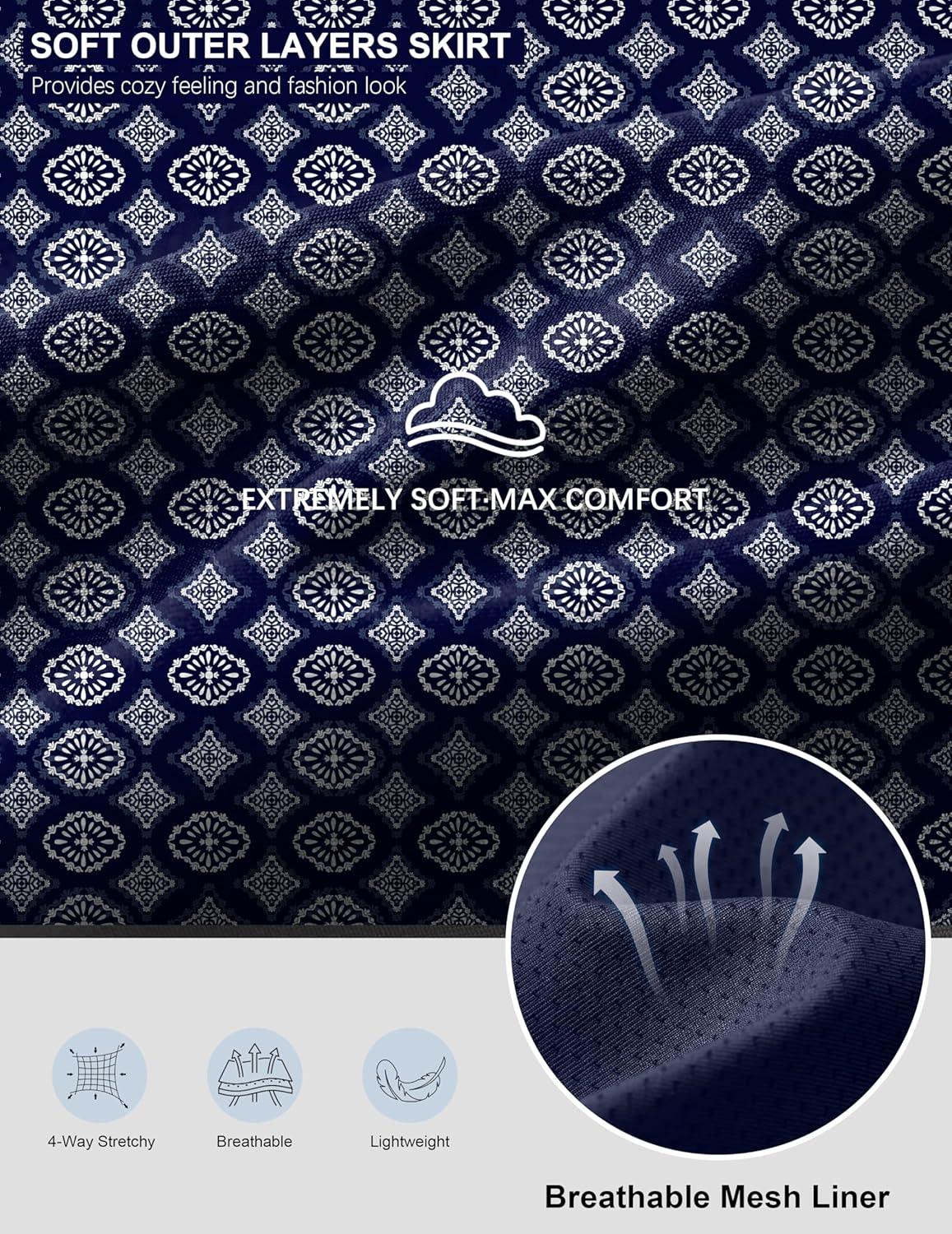 G Gradual 19″ Skorts for Woman Knee Length Golf Skirt Long Athletic Tennis Skorts for Women Dressy Casual with Shorts Pockets(Navy Flower)