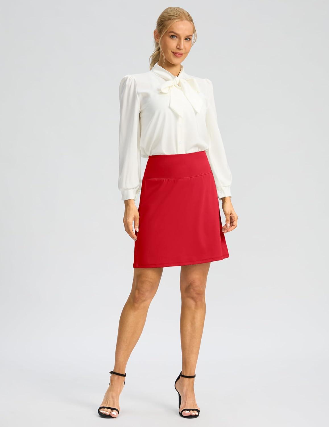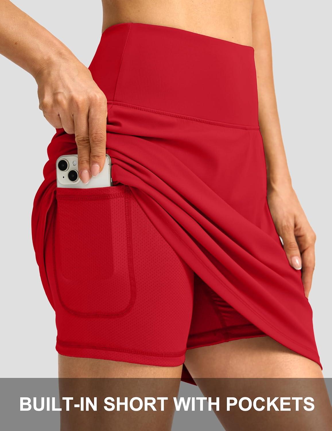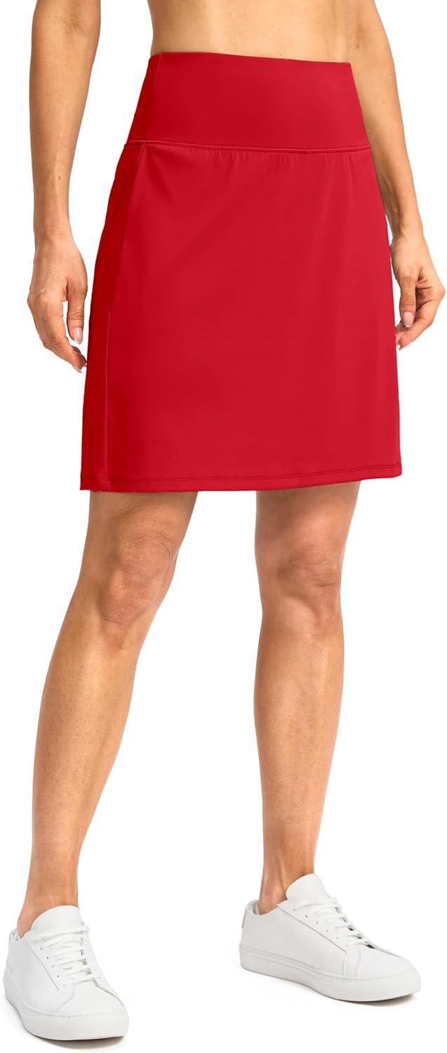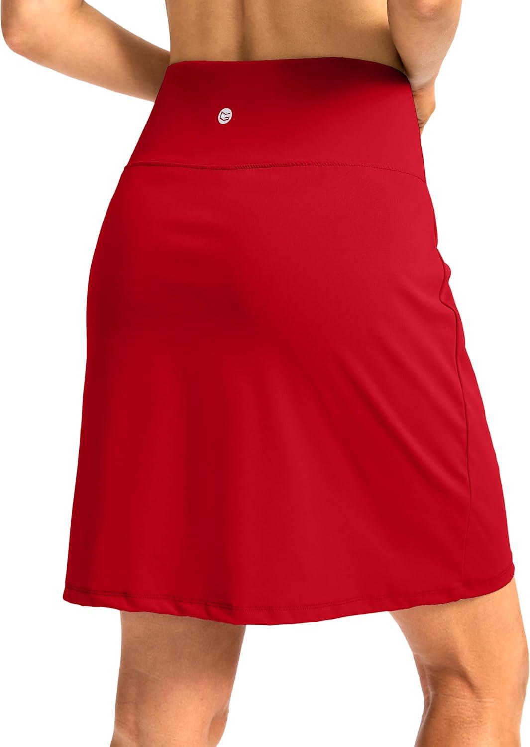 G Gradual 19" Skorts for Woman Knee Length Golf Skirt Long Athletic Tennis Skorts for Women Dressy Casual with Shorts Pockets(Red)