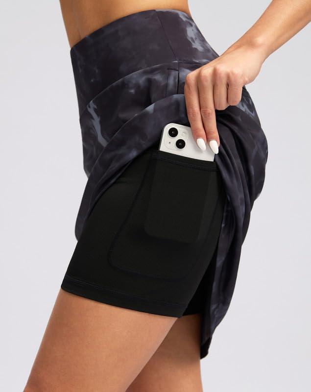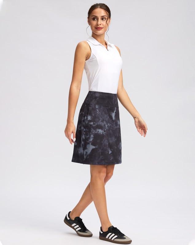 G Gradual 20" Golf Skorts Skirts for Women with 7 Pockets Knee Length Skort Athletic Modest Long Tennis Skirts for Women(Black Tie-dye)