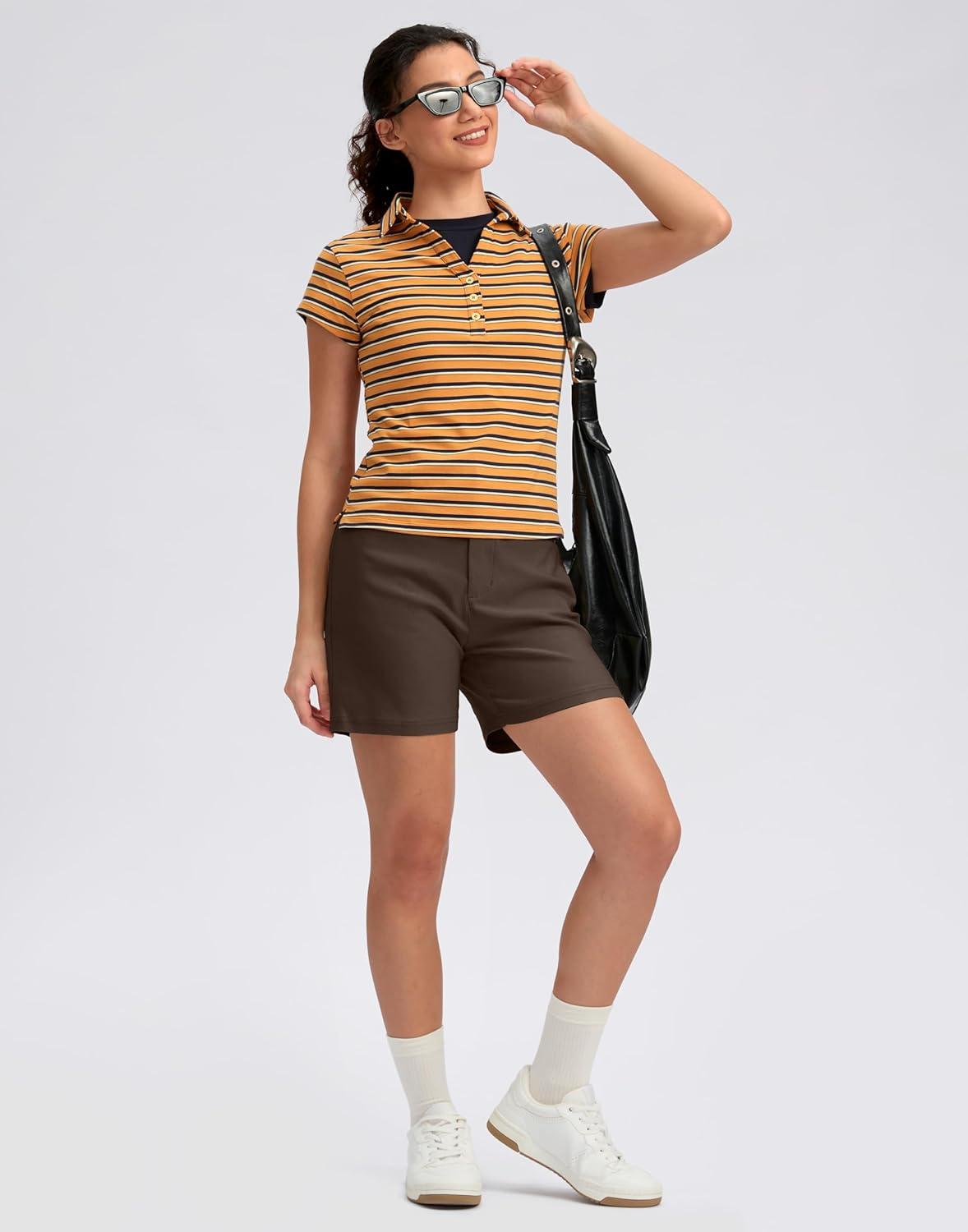 G Gradual 5" Women's Golf Shorts Stretchy Lightweight Outdoor Hiking Shorts with Pockets Shorts for Women Casual Summer(Caramel)
