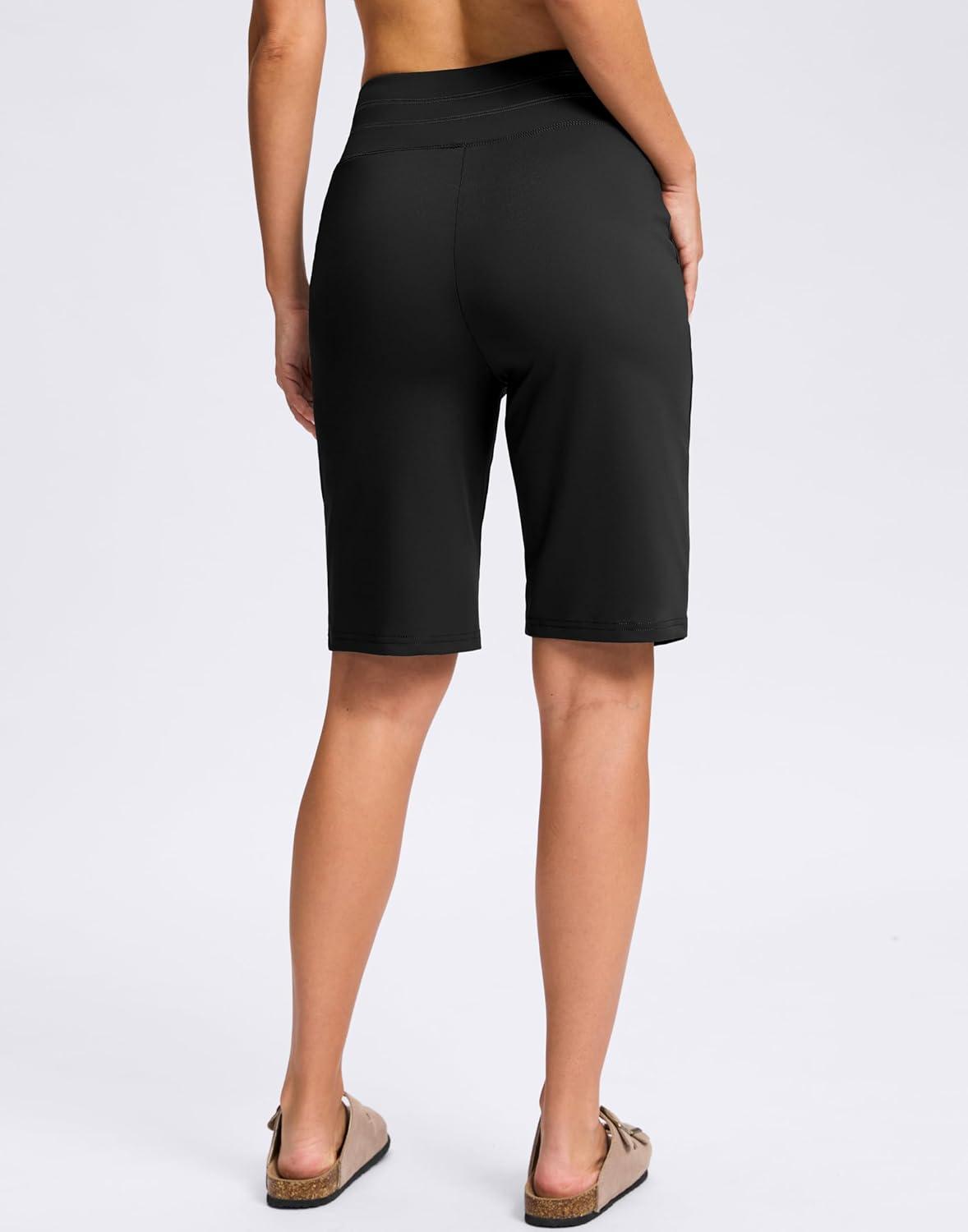 G GRADUAL Bermuda Shorts for Women with Pockets 10" Knee Length Womens High Waisted Long Shorts for Walking Athletic Workout(Black)