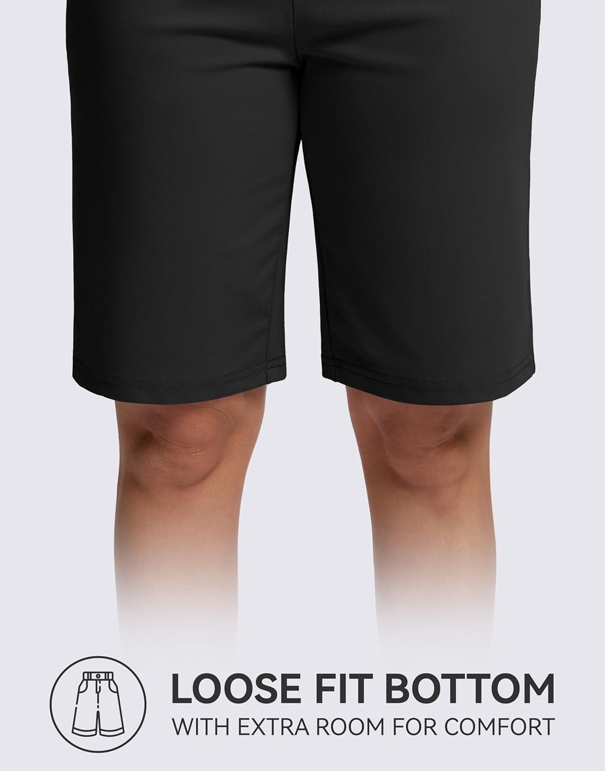 G GRADUAL Bermuda Shorts for Women with Pockets 10″ Knee Length Womens High Waisted Long Shorts for Walking Athletic Workout(Black)
