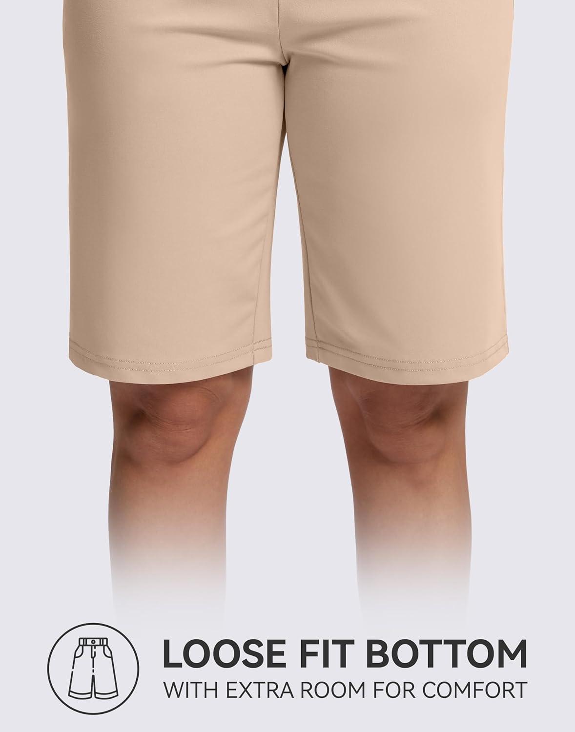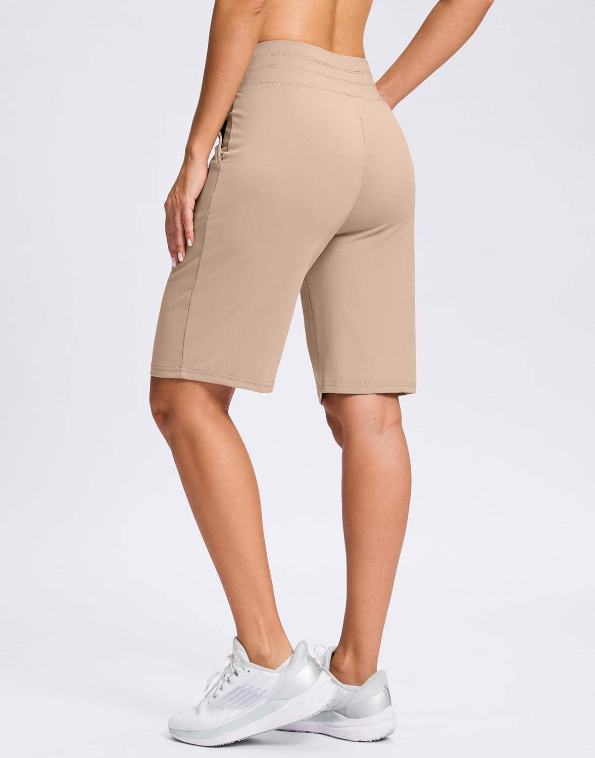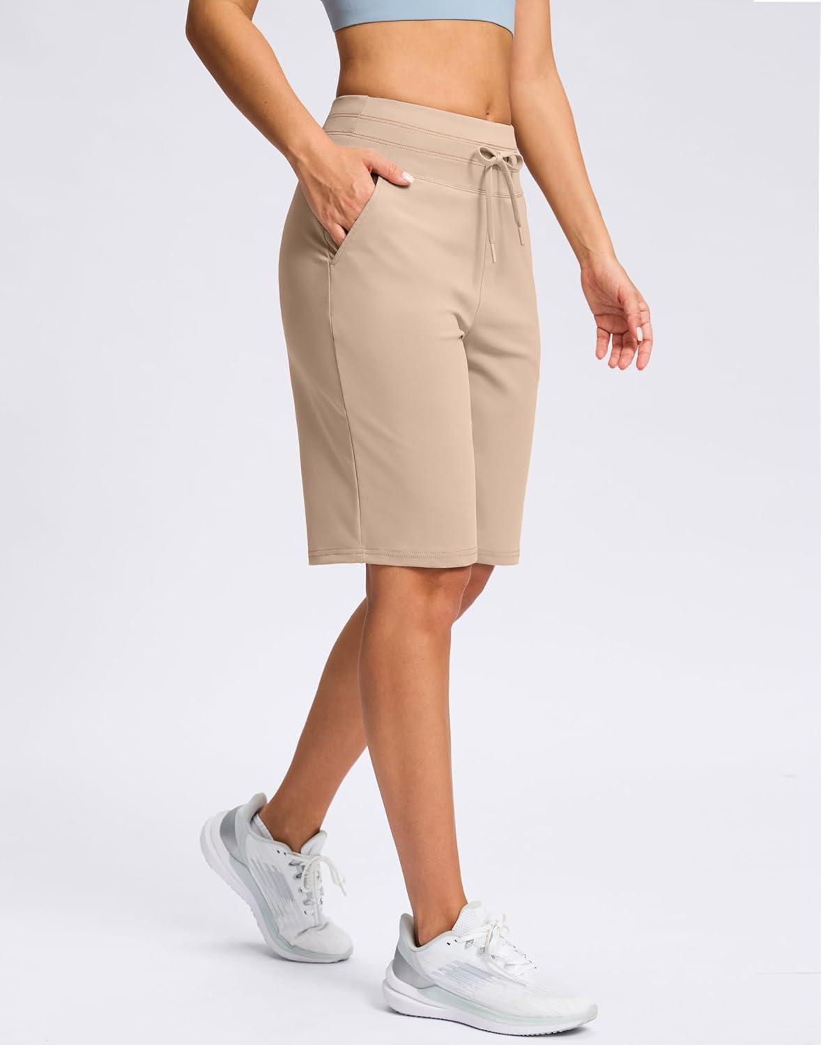 G GRADUAL Bermuda Shorts for Women with Pockets 10″ Knee Length Womens High Waisted Long Shorts for Walking Athletic Workout(Khaki)