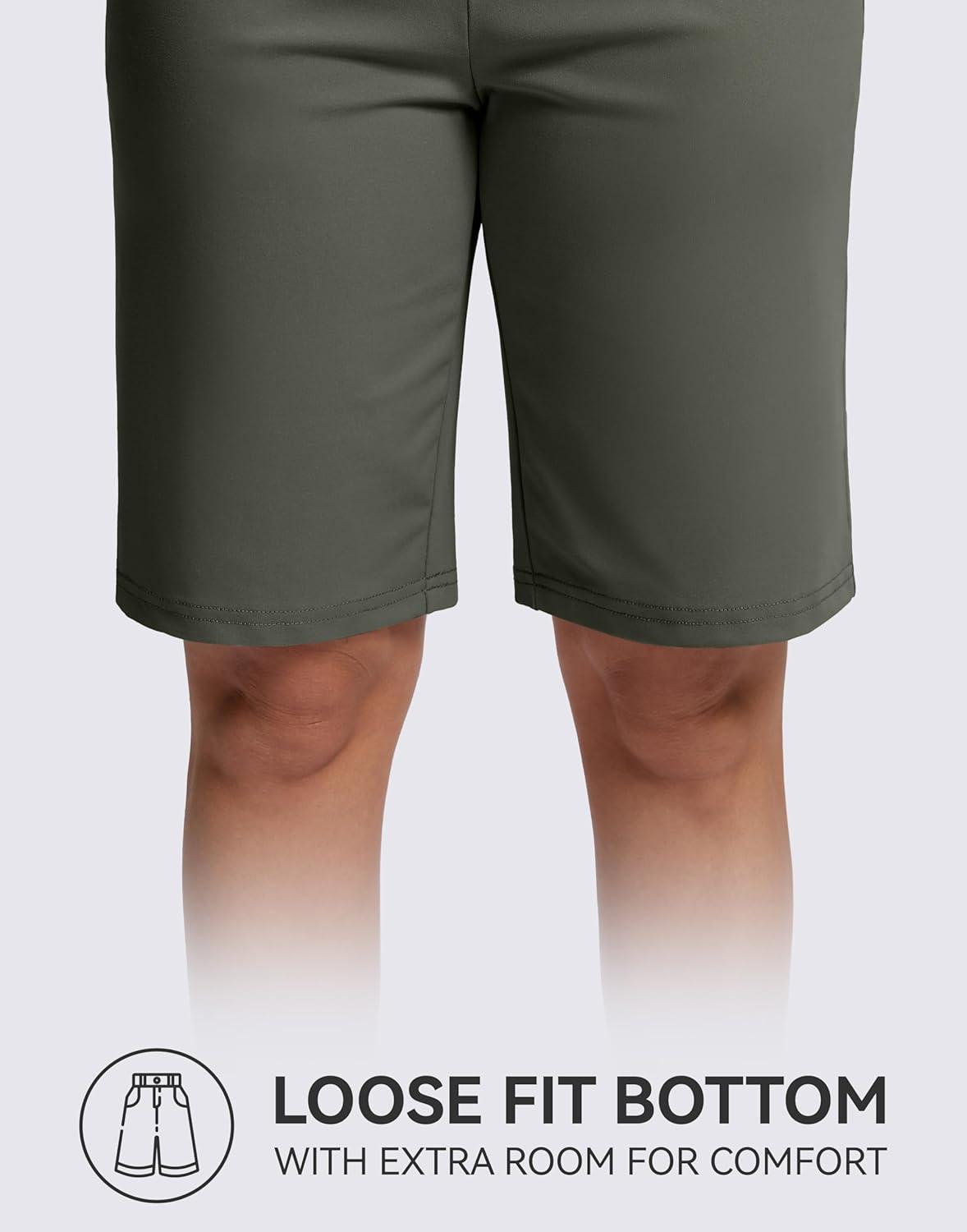 G GRADUAL Bermuda Shorts for Women with Pockets 10″ Knee Length Womens High Waisted Long Shorts for Walking Athletic Workout(Sage Green)