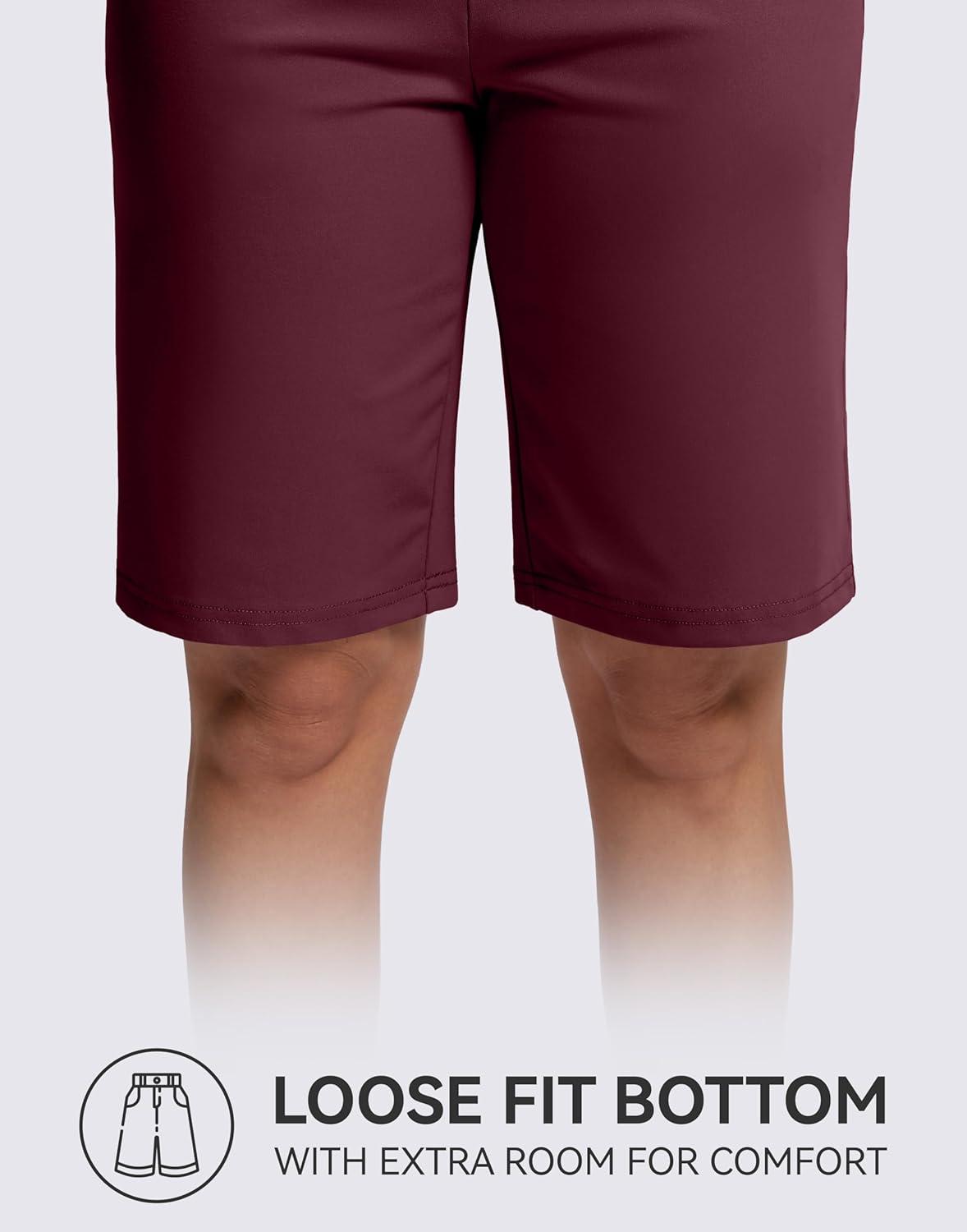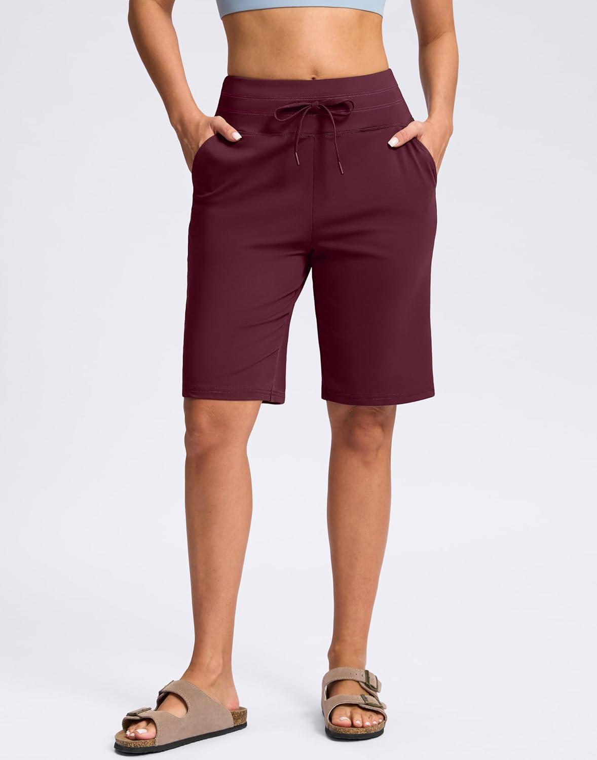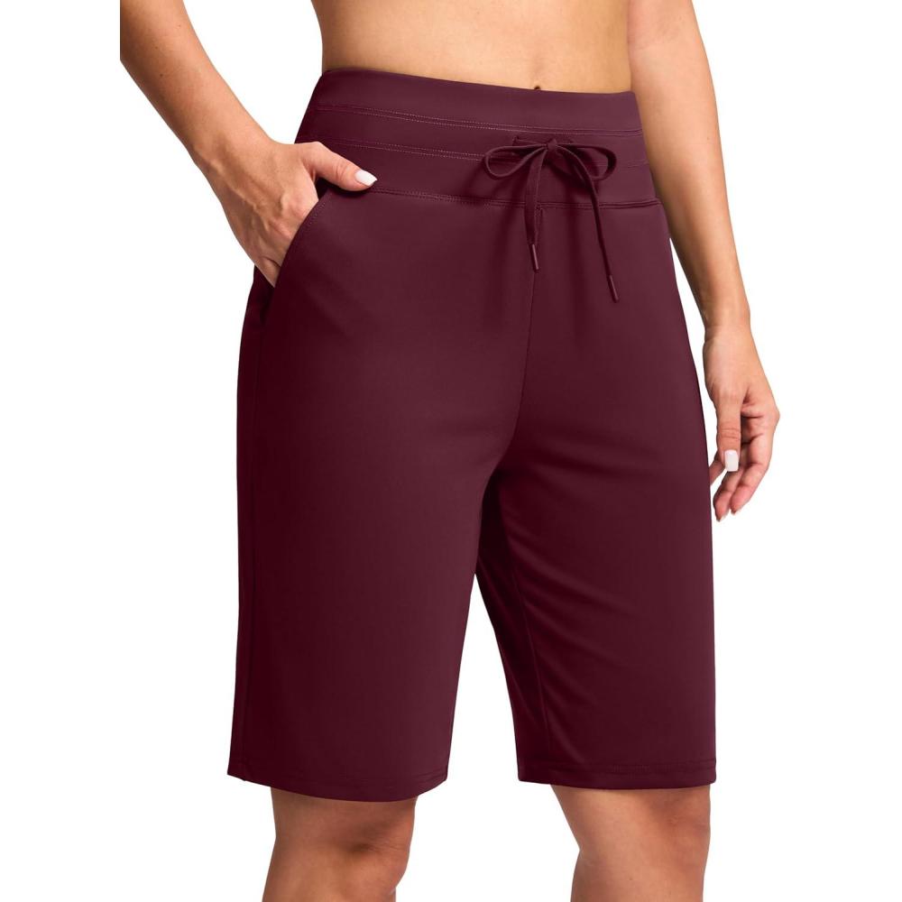 G GRADUAL Bermuda Shorts for Women with Pockets 10″ Knee Length Womens High Waisted Long Shorts for Walking Athletic Workout(Wine)