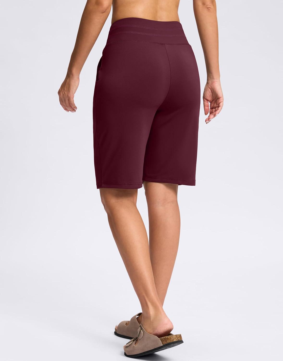 G GRADUAL Bermuda Shorts for Women with Pockets 10" Knee Length Womens High Waisted Long Shorts for Walking Athletic Workout(Wine)