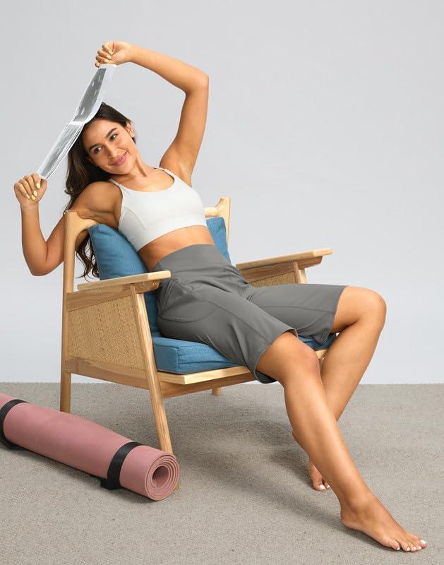 G Gradual Bermuda Shorts for Women with Pockets 12" Knee Length Women's High Waisted Stretch Long Shorts Walking Casual(Grey)