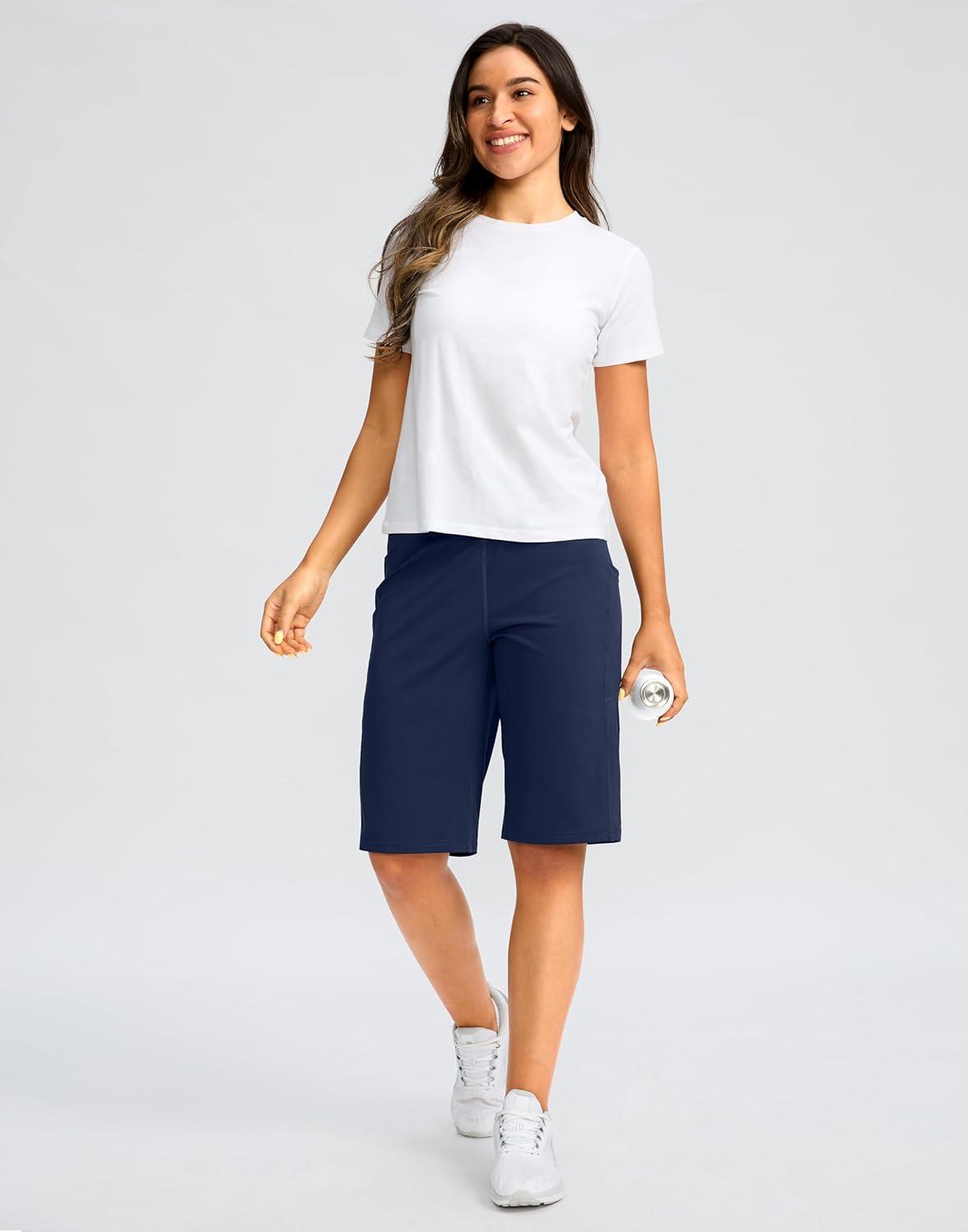 G Gradual Bermuda Shorts for Women with Pockets 12″ Knee Length Women’s High Waisted Stretch Long Shorts Walking Casual(Navy)