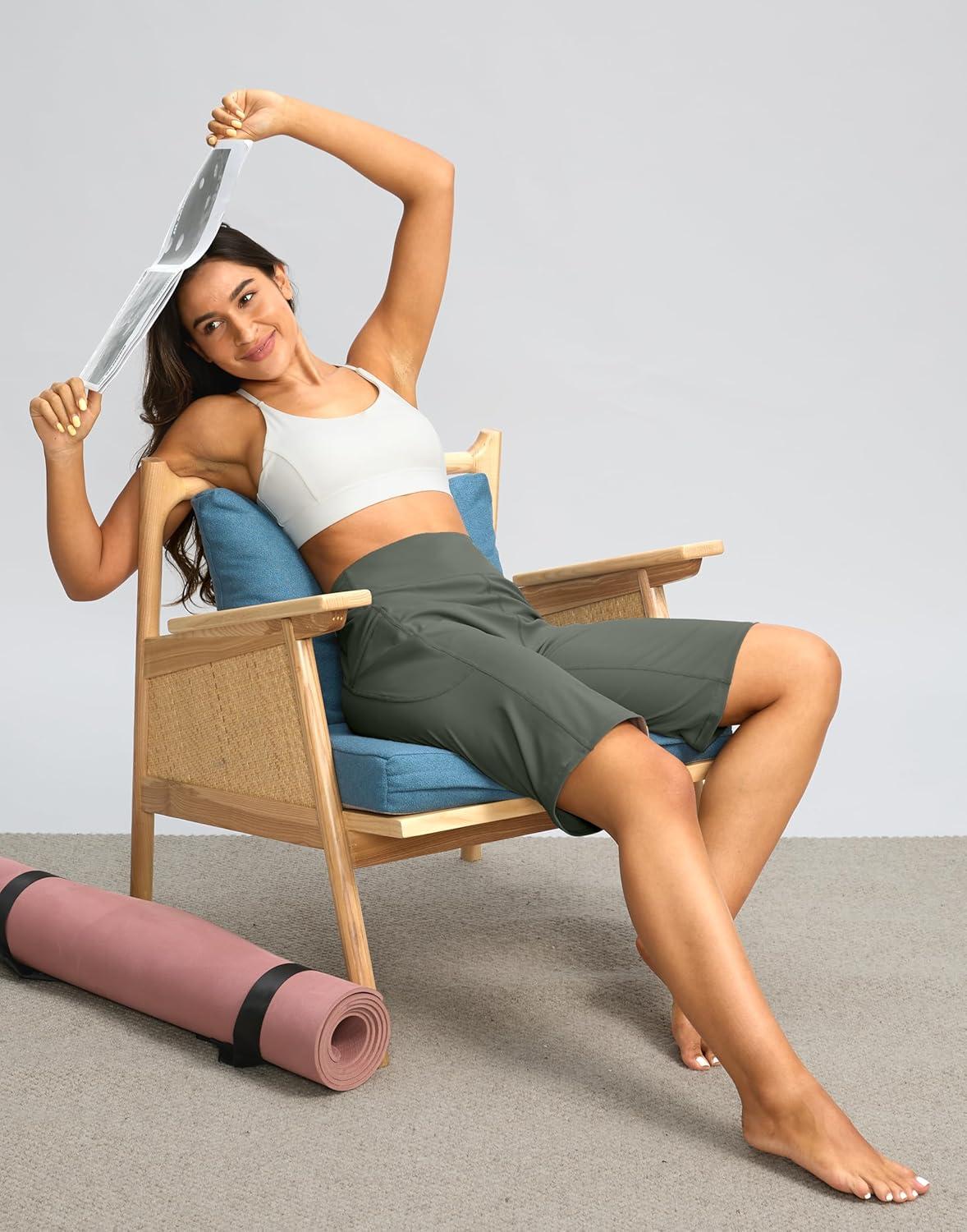 G Gradual Bermuda Shorts for Women with Pockets 12″ Knee Length Women’s High Waisted Stretch Long Shorts Walking Casual(Sage)
