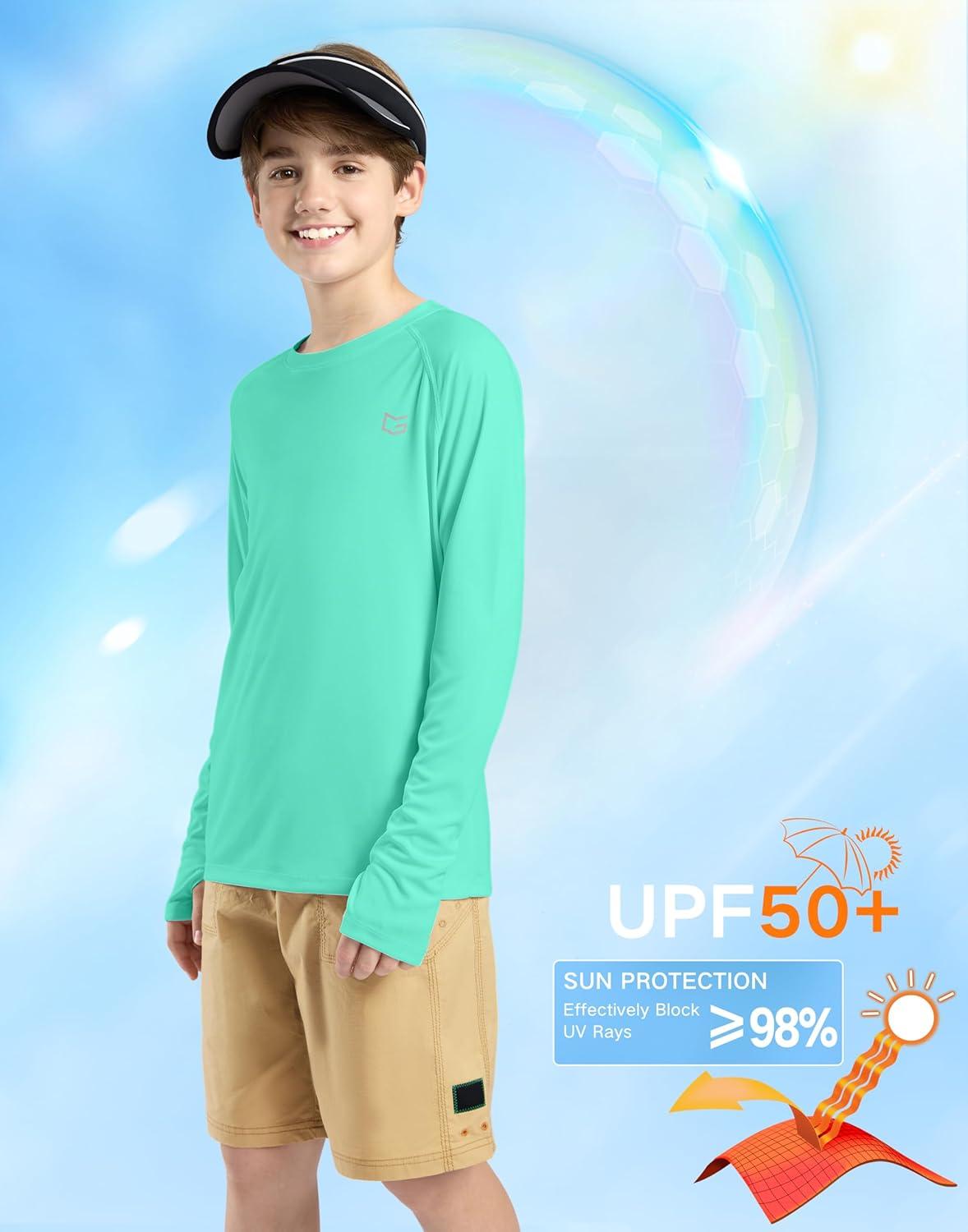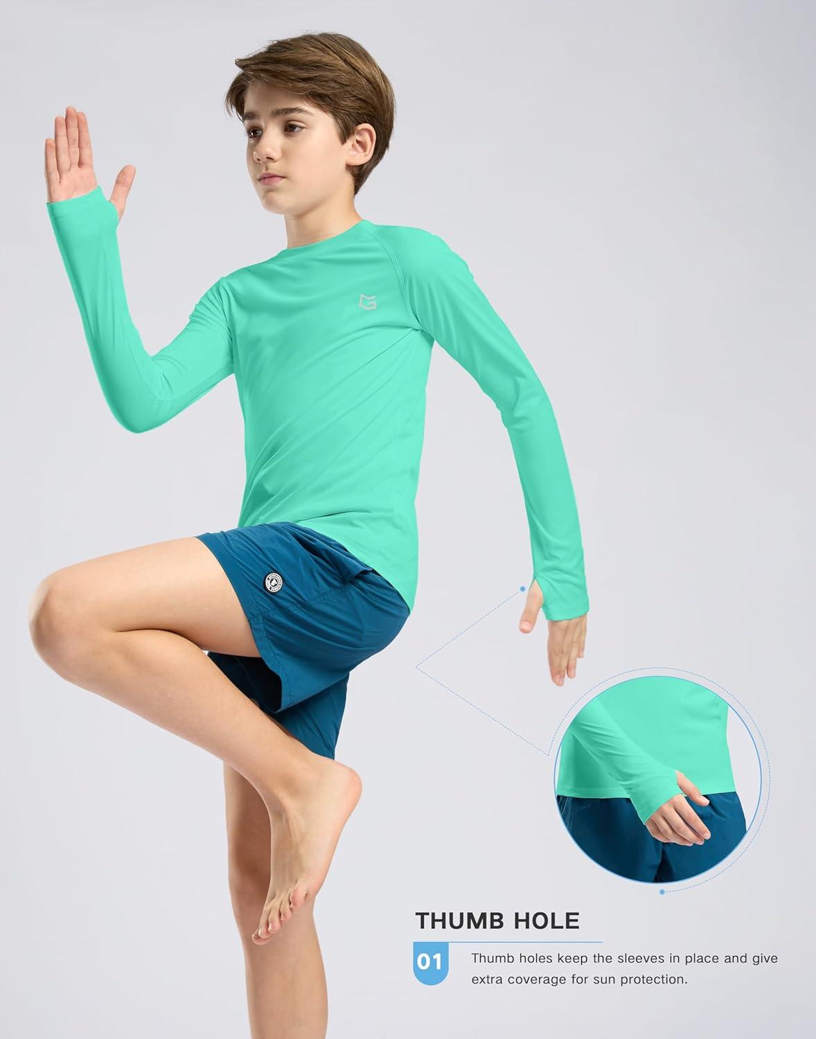 G Gradual Boy’s Rash Guard UPF 50+ Sun Protection Shirt Quick Dry Long Sleeve Swim Shirts Lightweight SPF Youth Fishing Shirt(03-light Green)