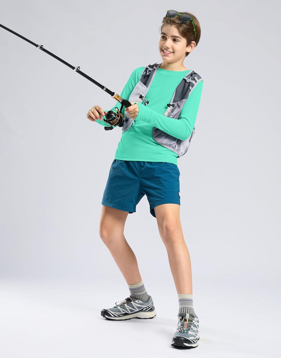 G Gradual Boy's Rash Guard UPF 50+ Sun Protection Shirt Quick Dry Long Sleeve Swim Shirts Lightweight SPF Youth Fishing Shirt(03-light Green)