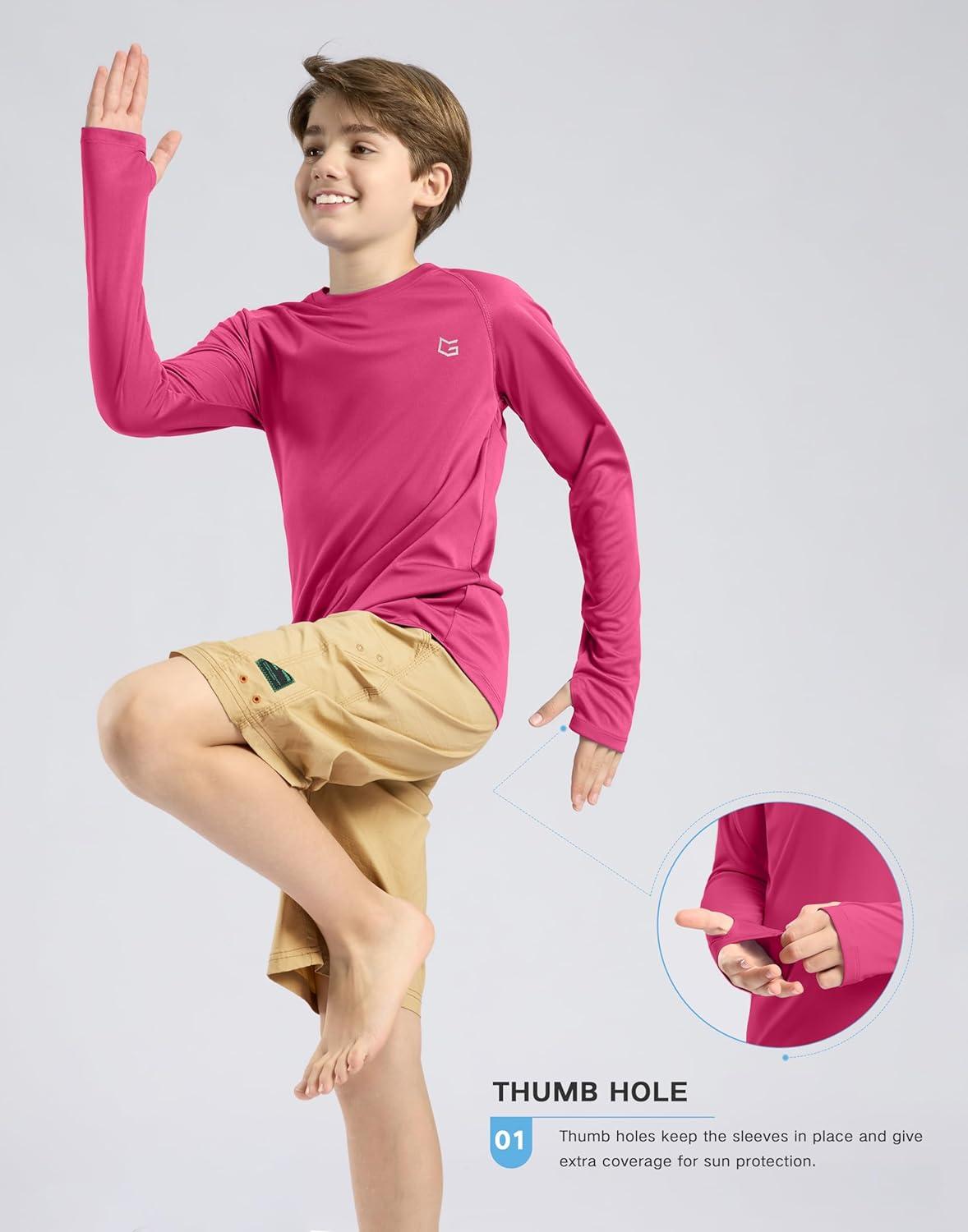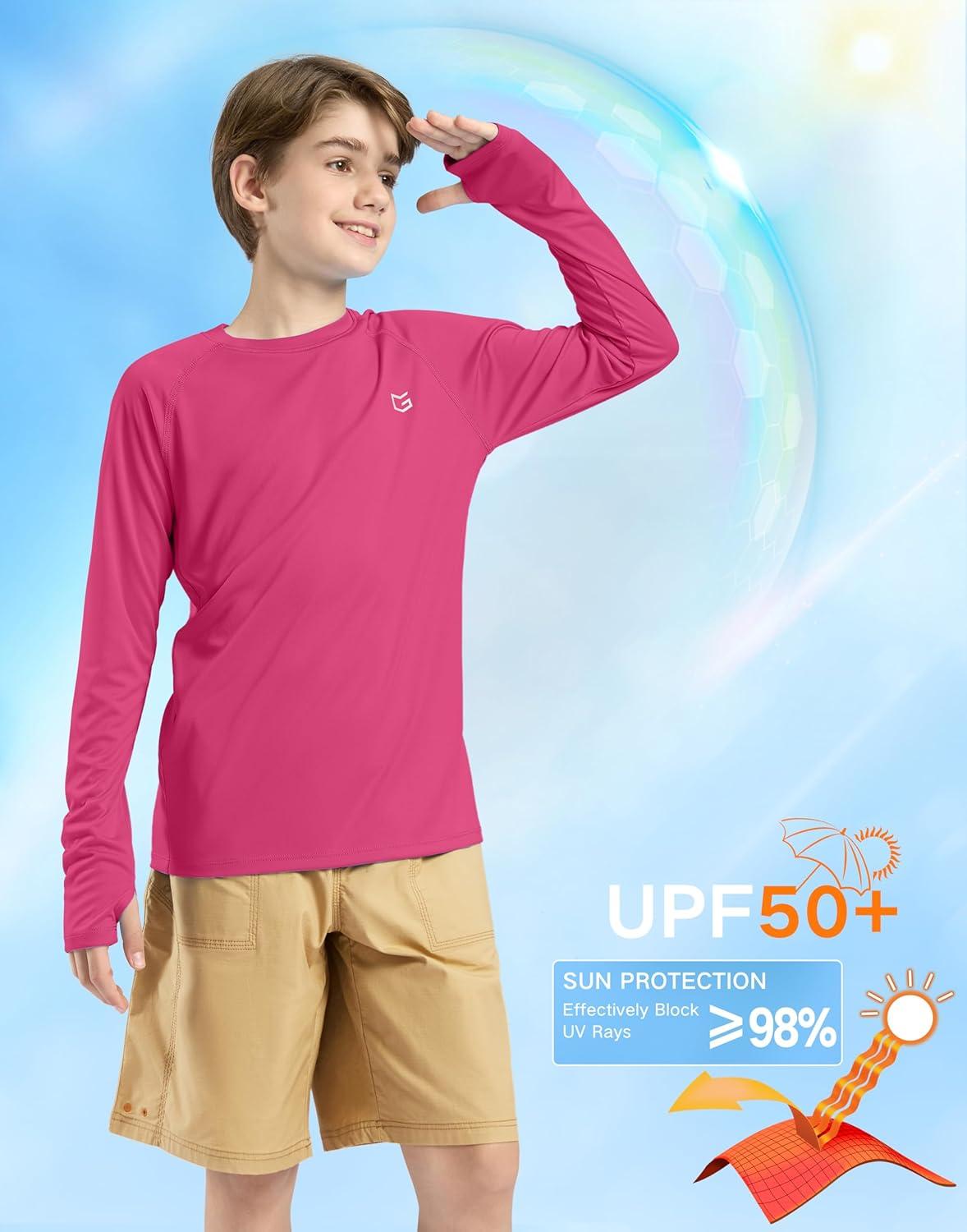 G Gradual Boy’s Rash Guard UPF 50+ Sun Protection Shirt Quick Dry Long Sleeve Swim Shirts Lightweight SPF Youth Fishing Shirt(Hot Pink)