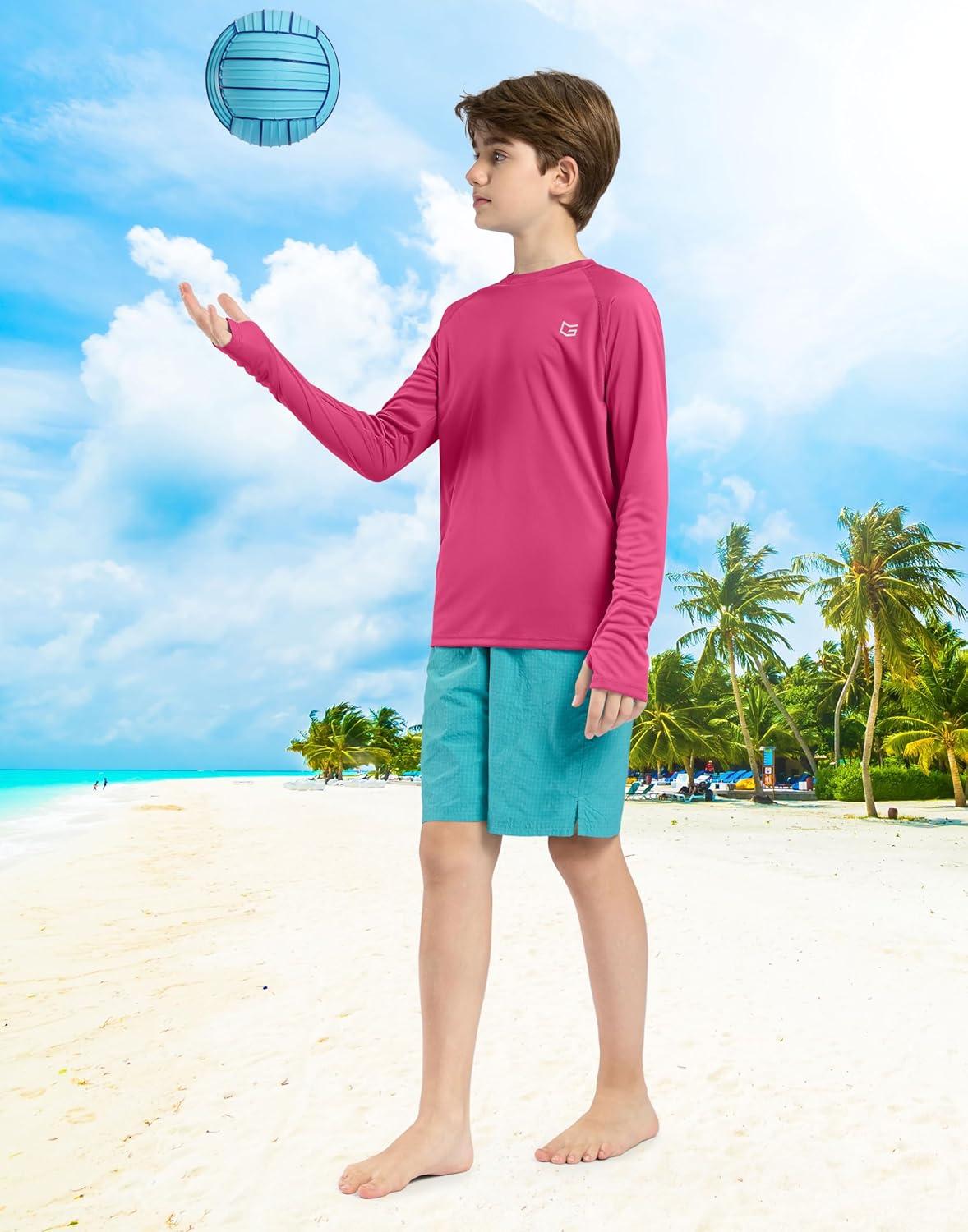imageG Gradual Boys Rash Guard UPF 50 Sun Protection Shirt Quick Dry Long Sleeve Swim Shirts Lightweight SPF Youth Fishing ShirtHot Pink