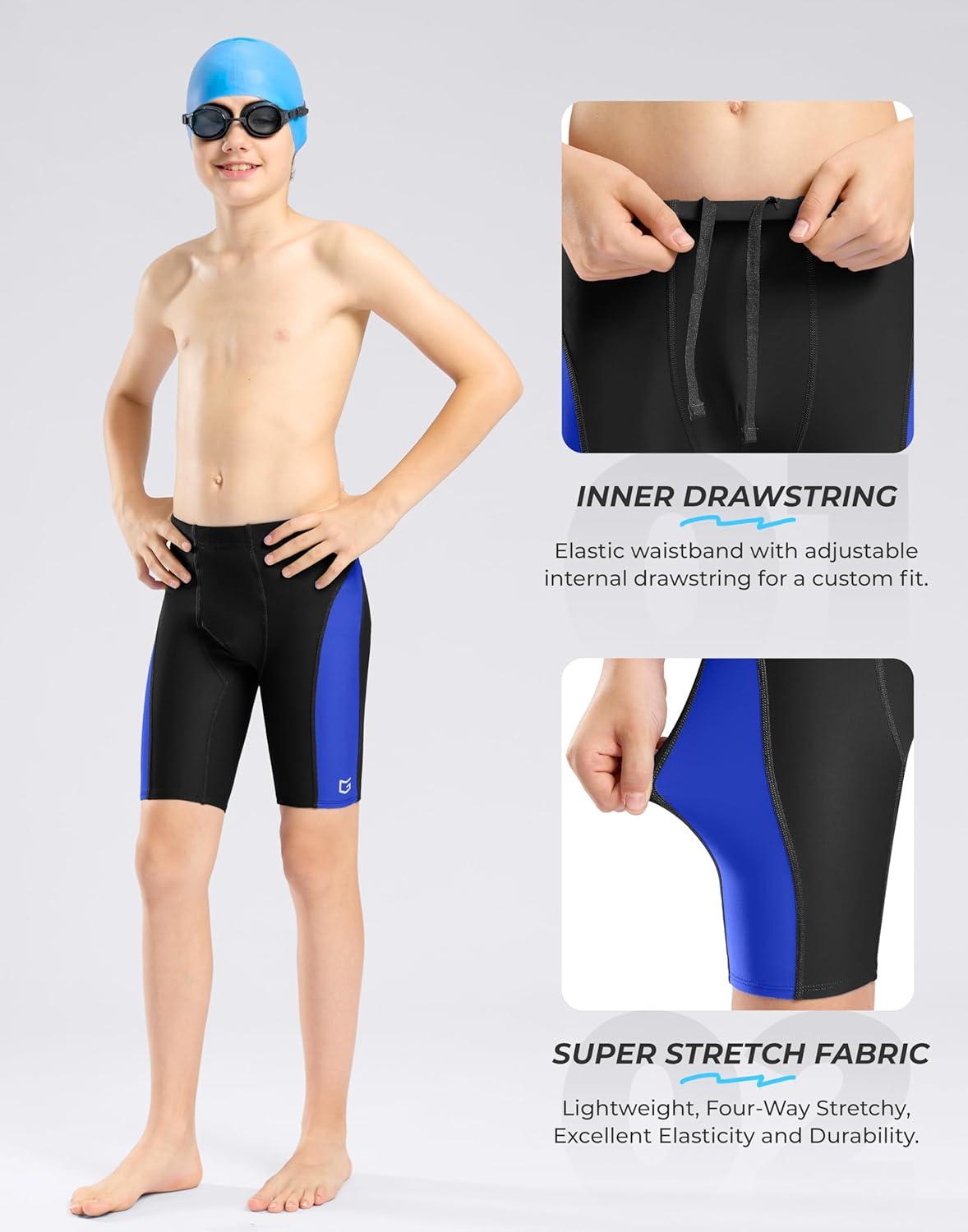 G Gradual Boys Swim Jammers Youth Competitive Swim Team Trunks Quick Dry Stretch Racing Swimsuit Swimming Shorts for Boy(Black/Blue)