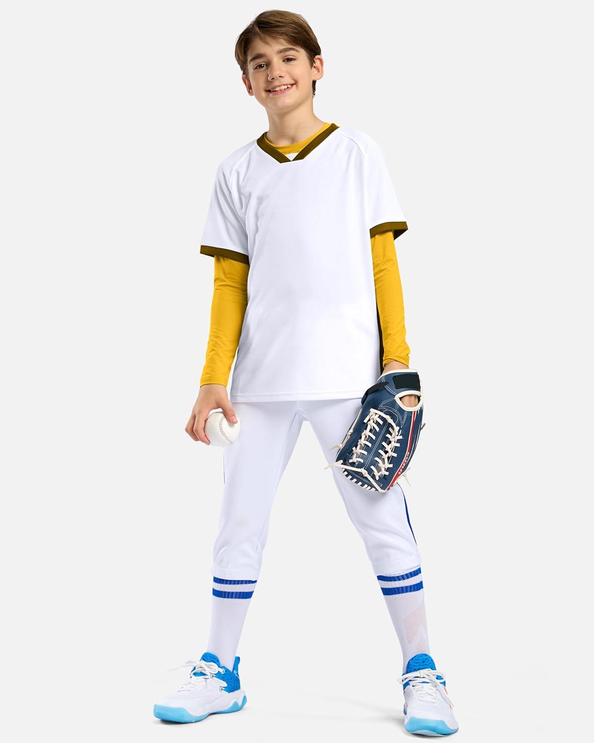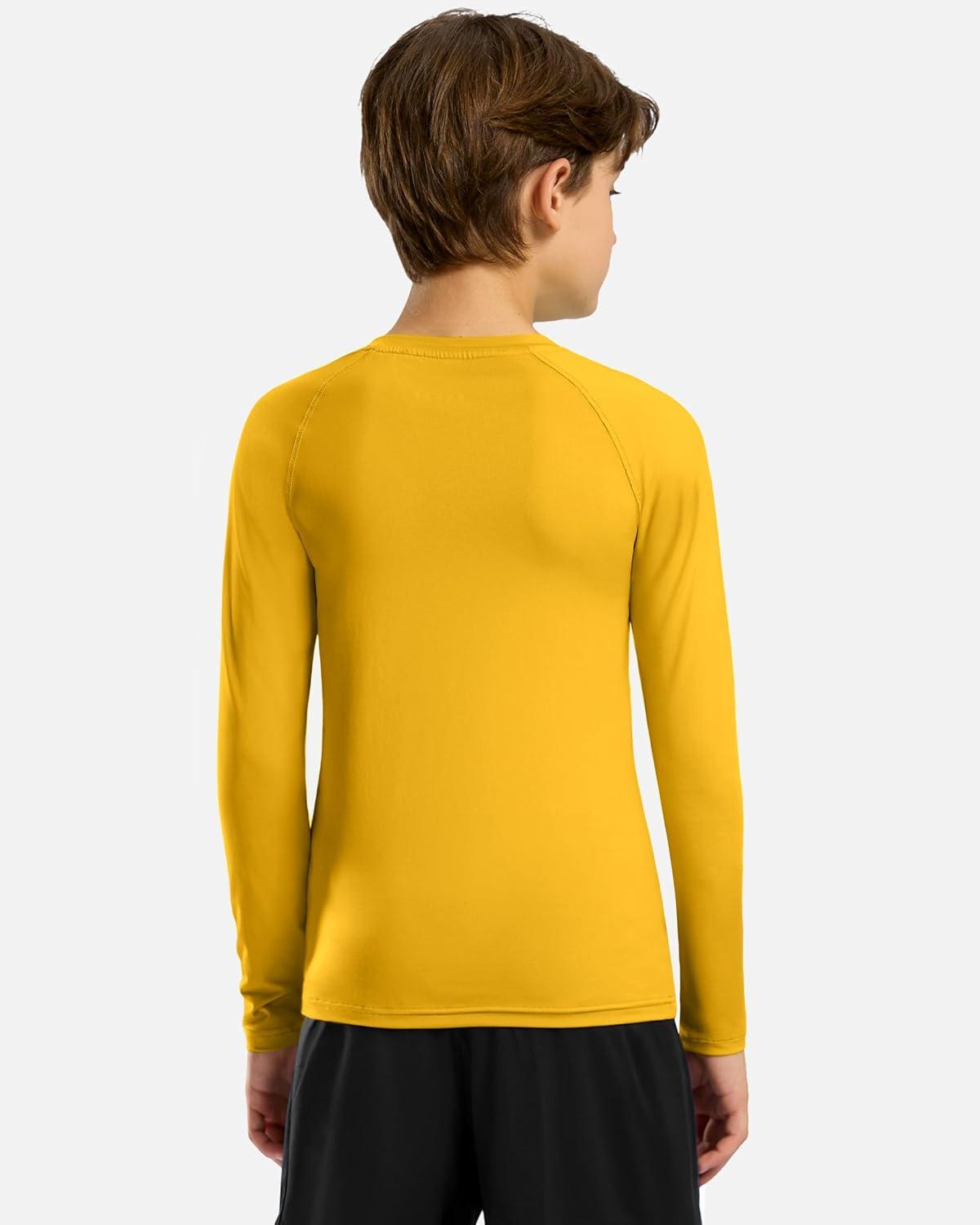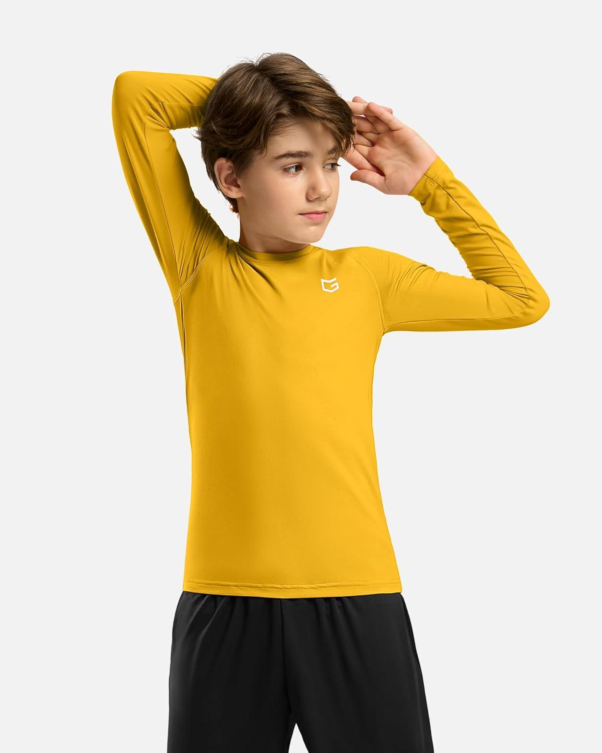G Gradual Boys Youth Compression Shirt Long Sleeve Football Baseball Undershirt Quick Dry Sports Base Layer for Boy(Golden Yellow)