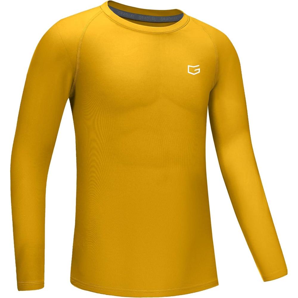imageG Gradual Boys Youth Compression Shirt Long Sleeve Football Baseball Undershirt Quick Dry Sports Base Layer for BoyGolden Yellow