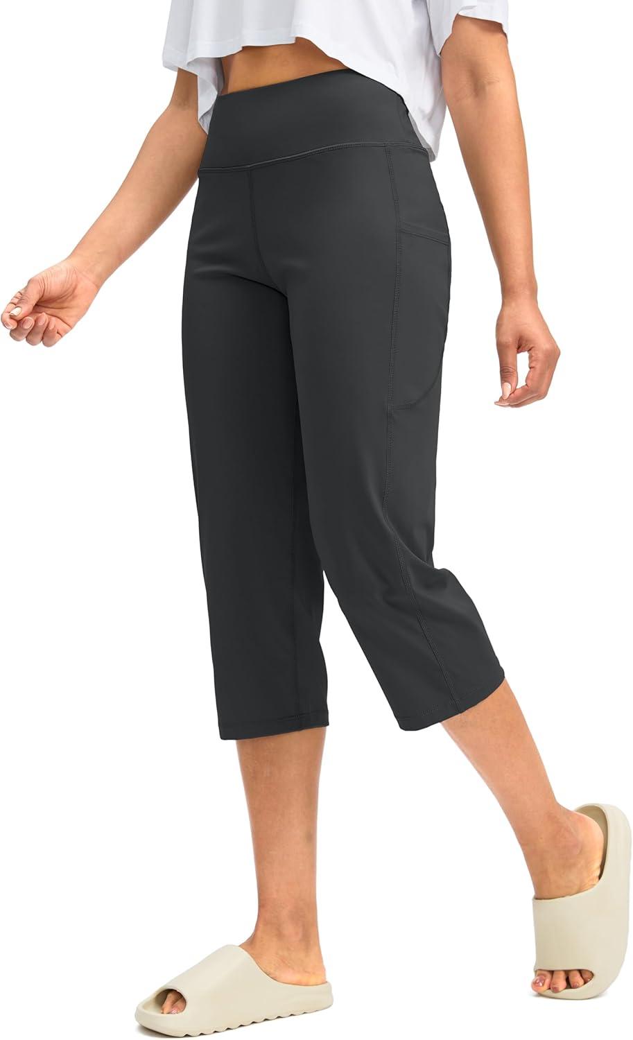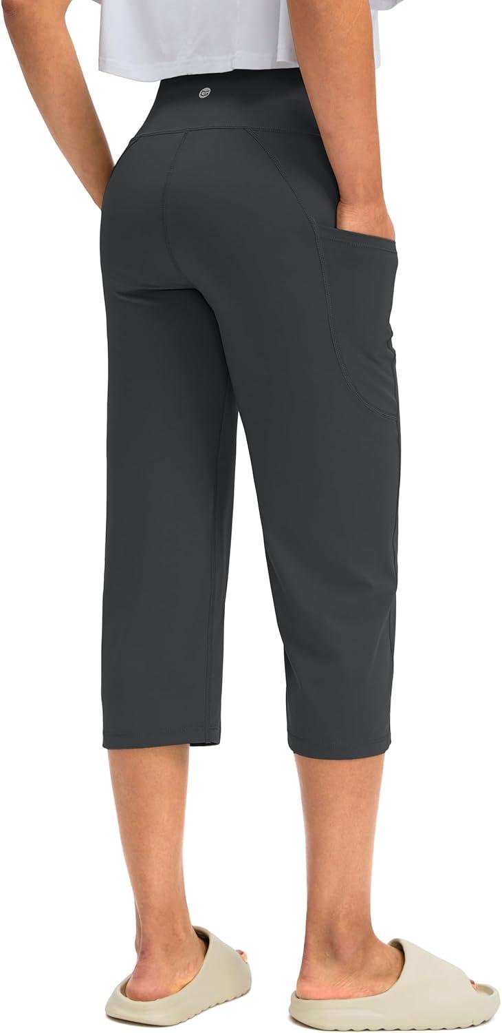 G Gradual Capri Pants for Women High Waist Workout Yoga Pants with Pockets Tummy Control Leggings Crop Straight(Dark Grey)