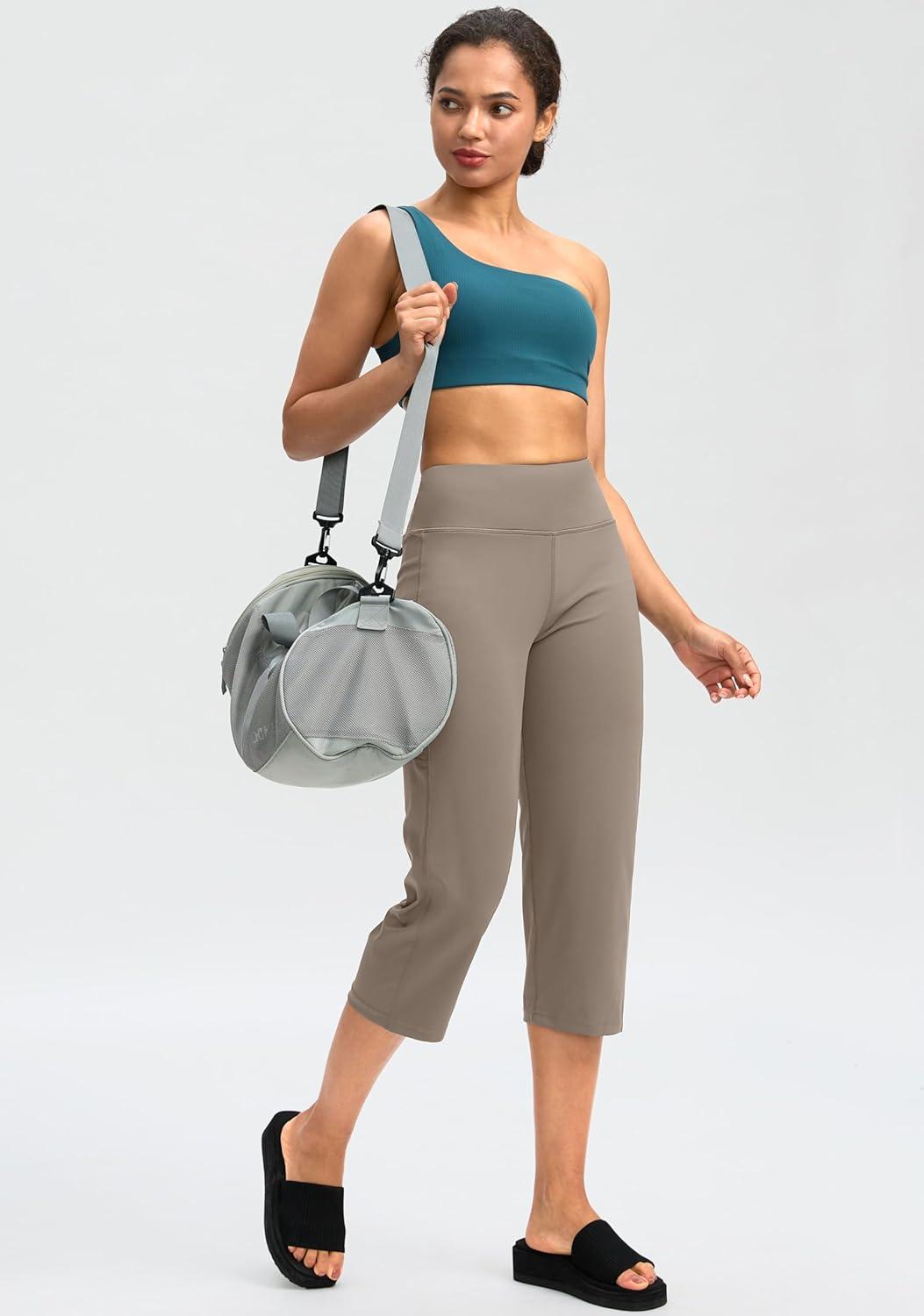 G Gradual Capri Pants for Women High Waist Workout Yoga Pants with Pockets Tummy Control Leggings Crop Straight(Dark Khaki)