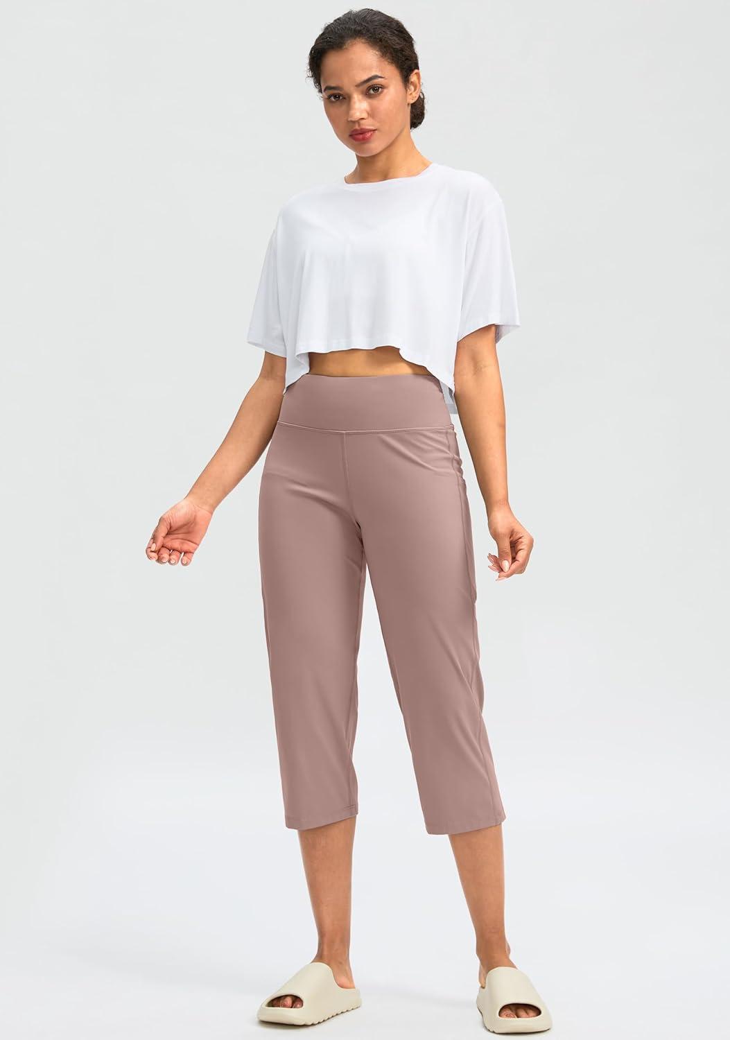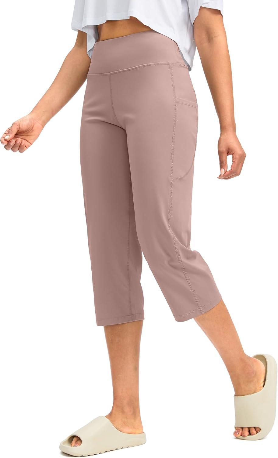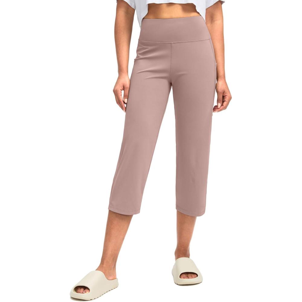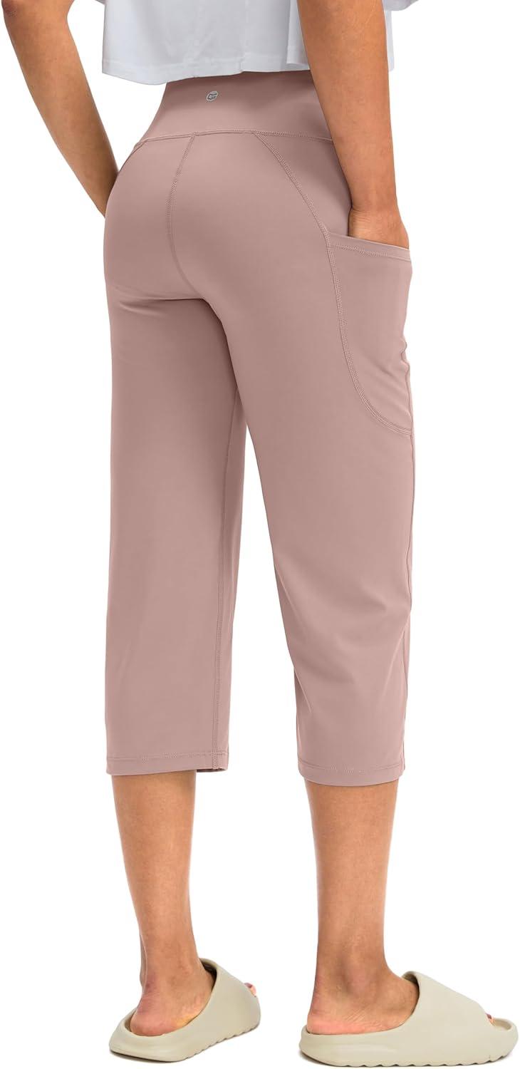 G Gradual Capri Pants for Women High Waist Workout Yoga Pants with Pockets Tummy Control Leggings Crop Straight(Mauve Pink)