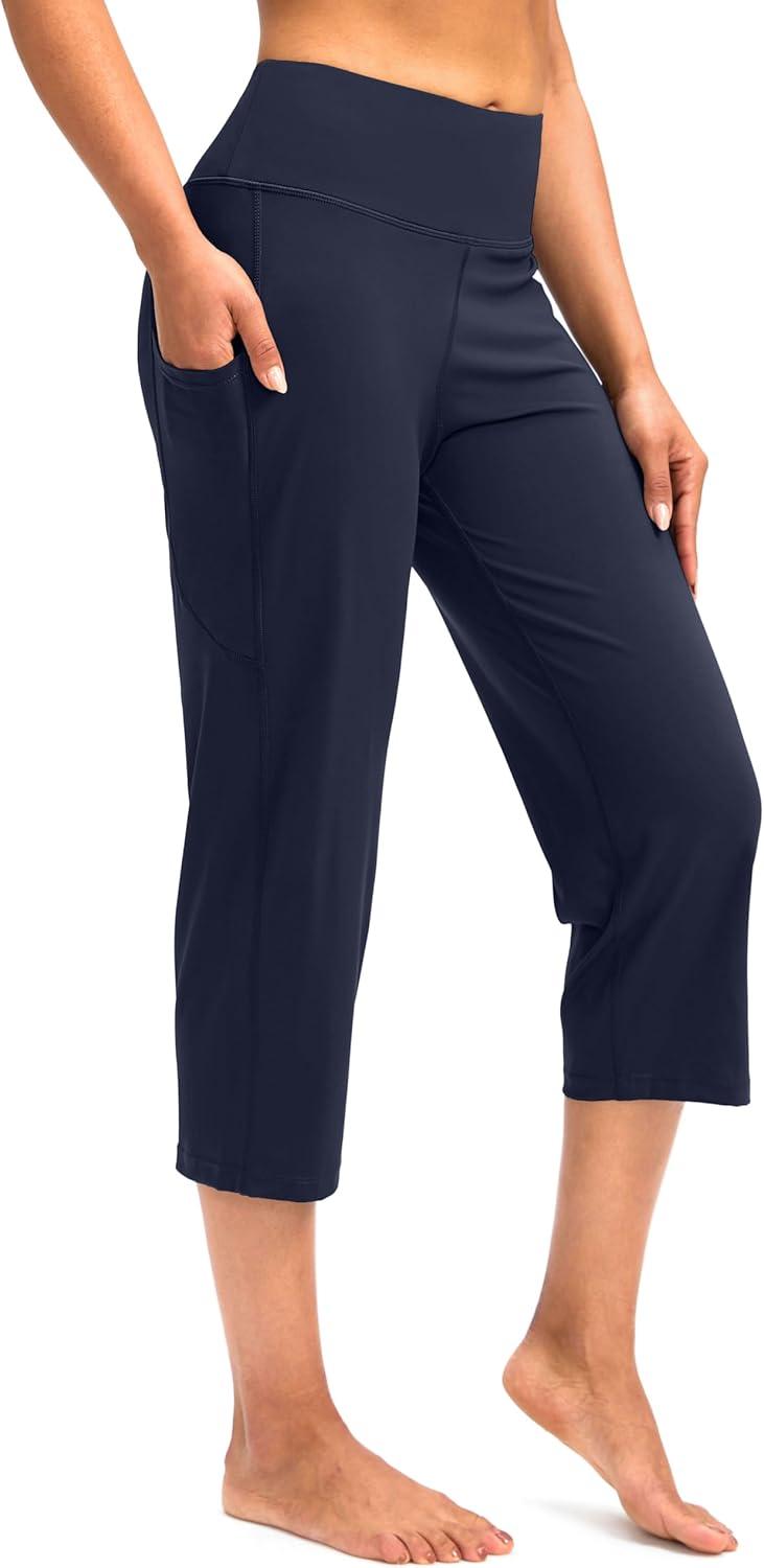 G Gradual Capri Pants for Women High Waist Workout Yoga Pants with Pockets Tummy Control Leggings Crop Straight(Navy)