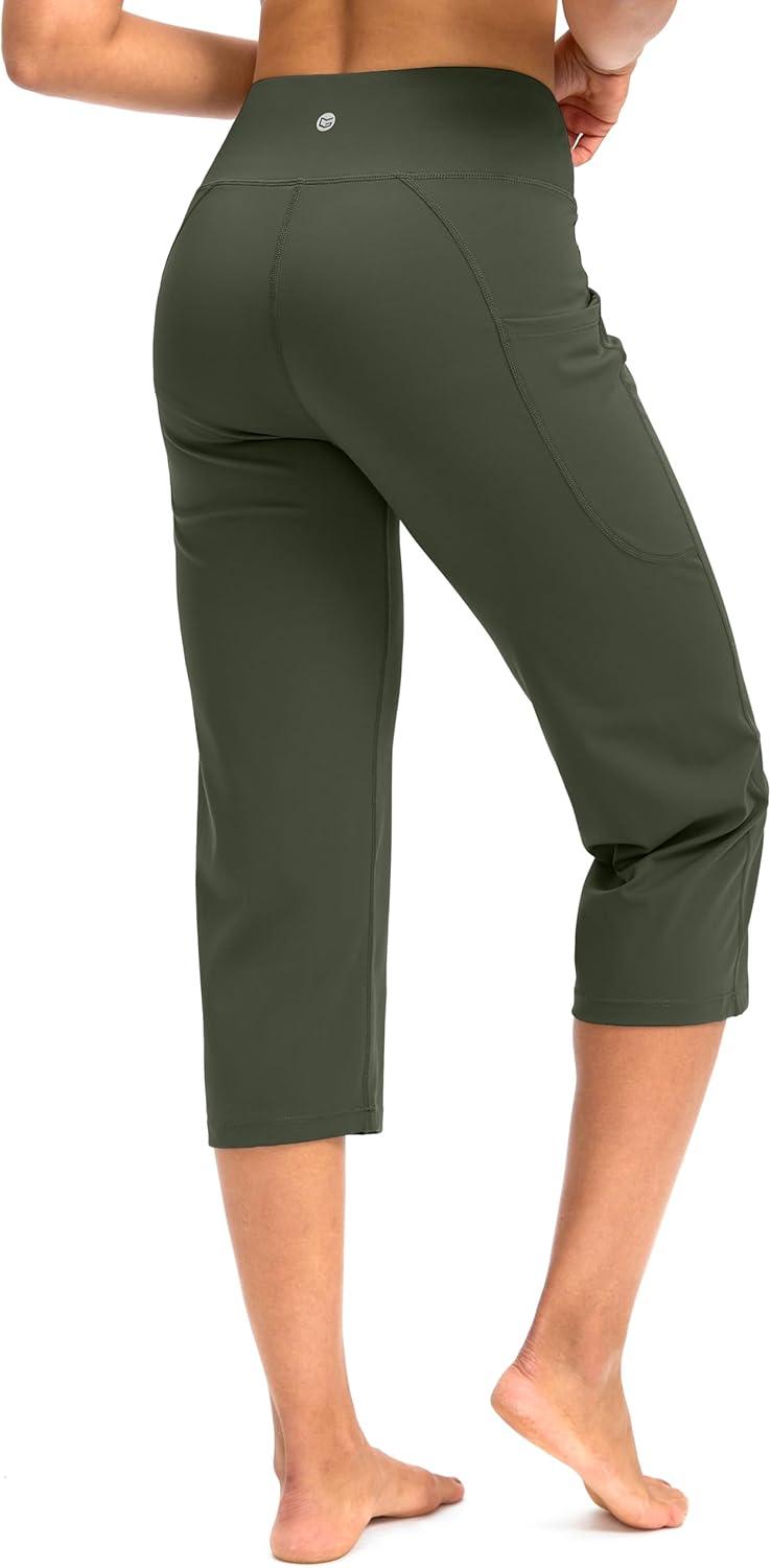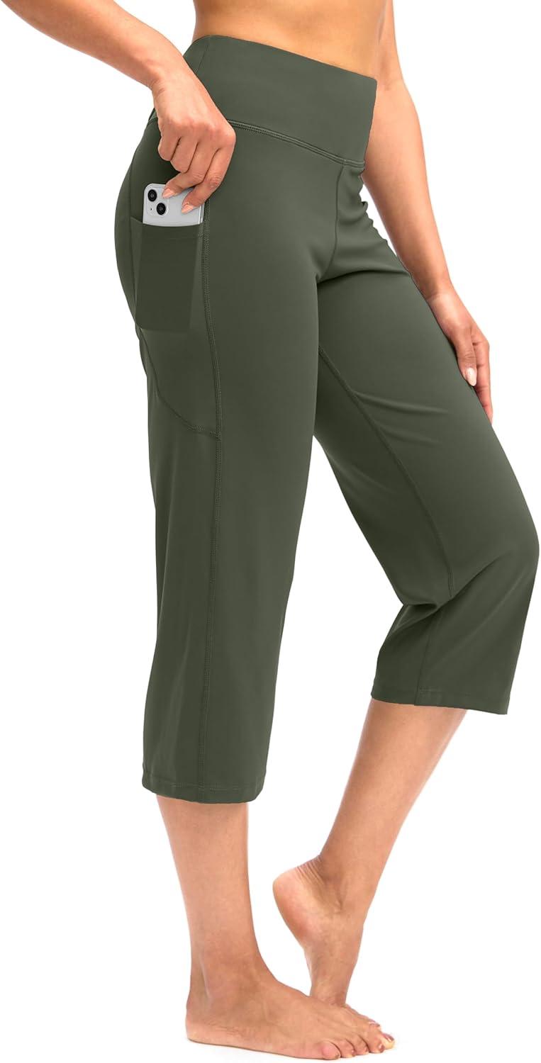 G Gradual Capri Pants for Women High Waist Workout Yoga Pants with Pockets Tummy Control Leggings Crop Straight(Sage)