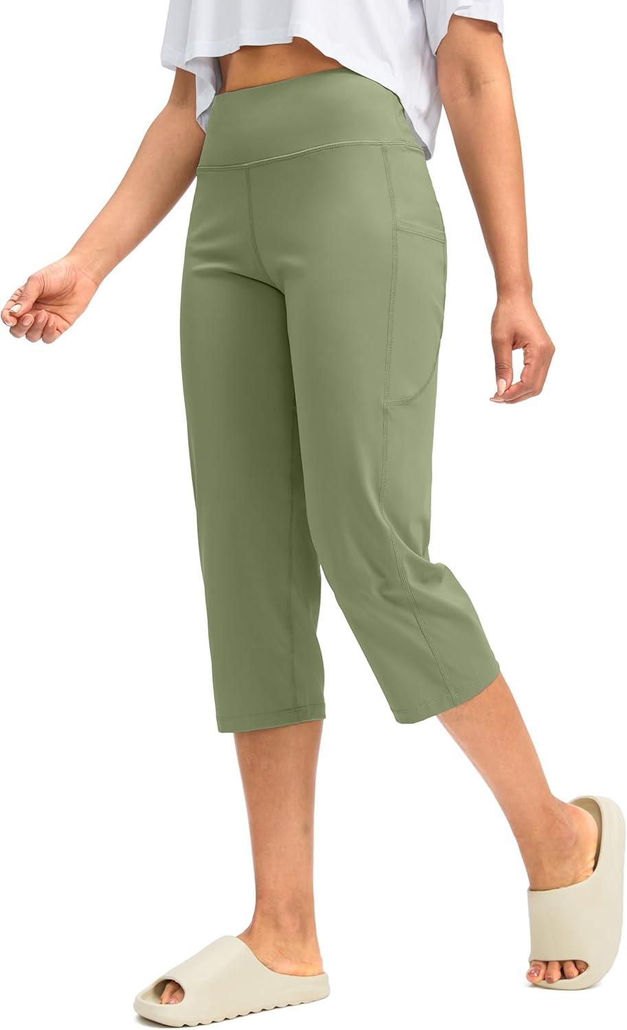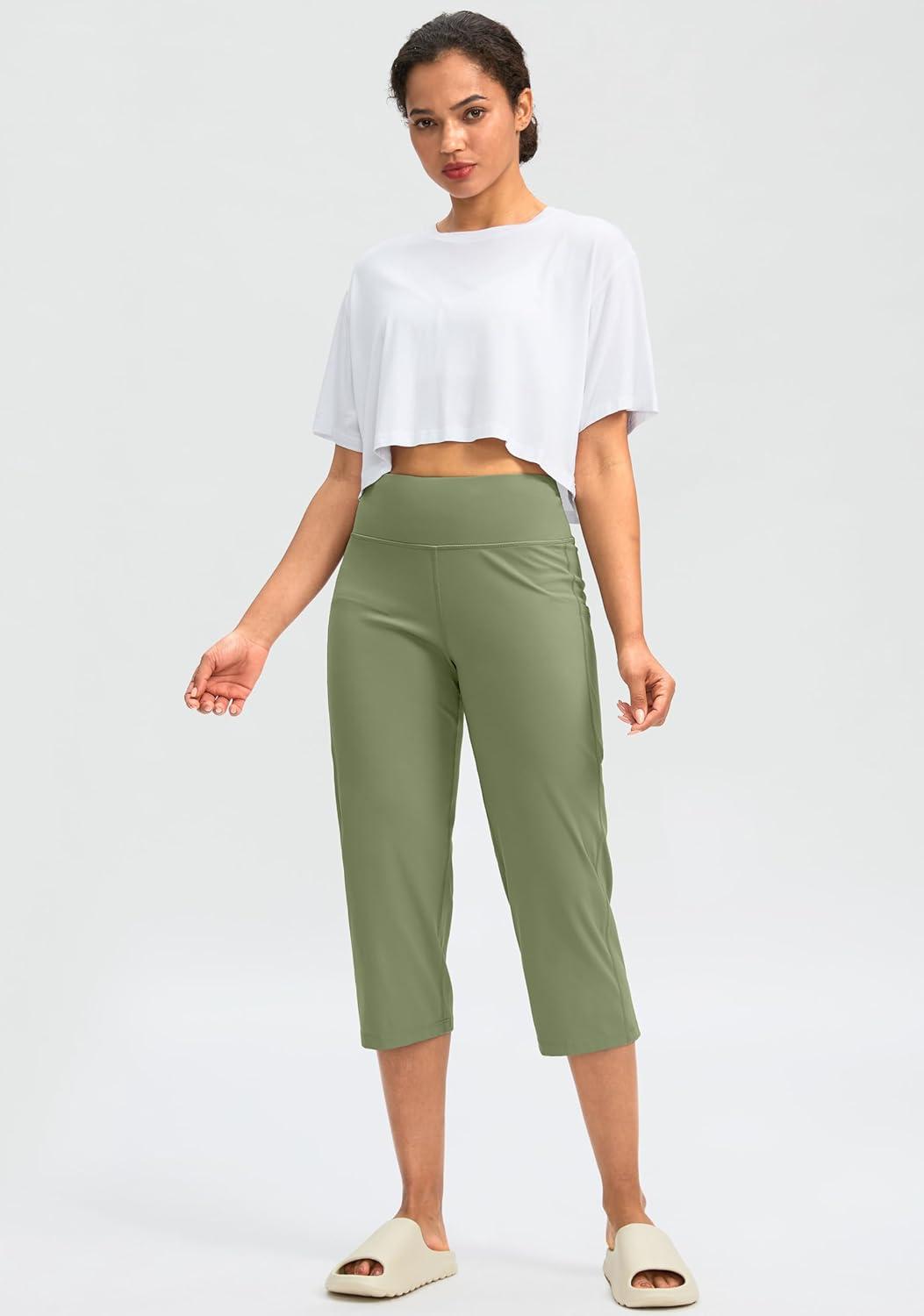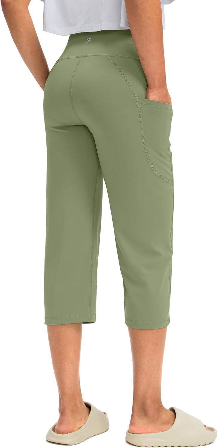 G Gradual Capri Pants for Women High Waist Workout Yoga Pants with Pockets Tummy Control Leggings Crop Straight(Sage)
