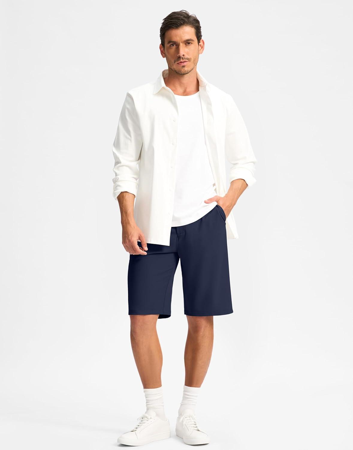 G Gradual Casual Shorts for Men 11" Lightweight Men's Golf Shorts Stretch with 3 Pockets Quick Dry Summer Breathable Shorts(Navy)