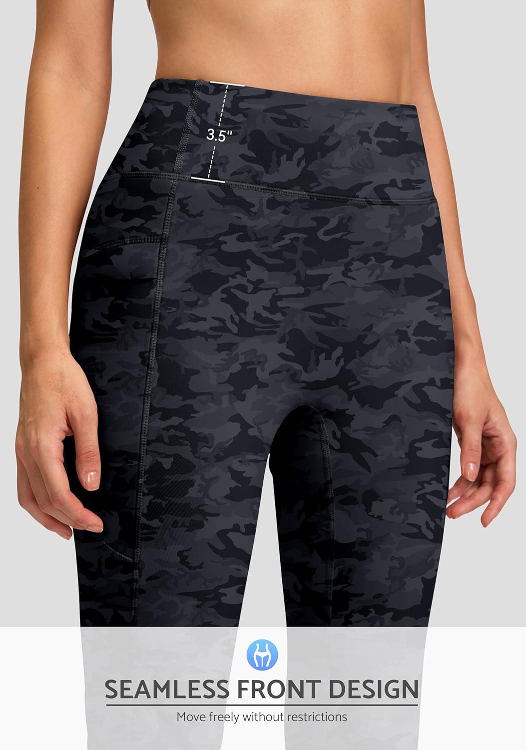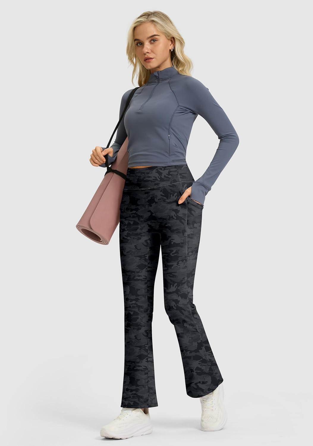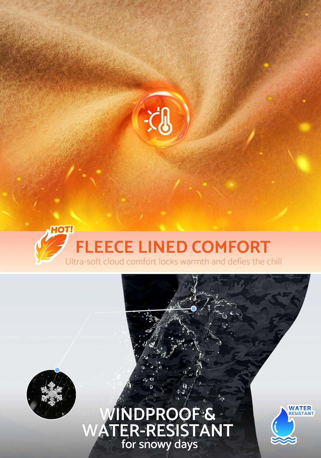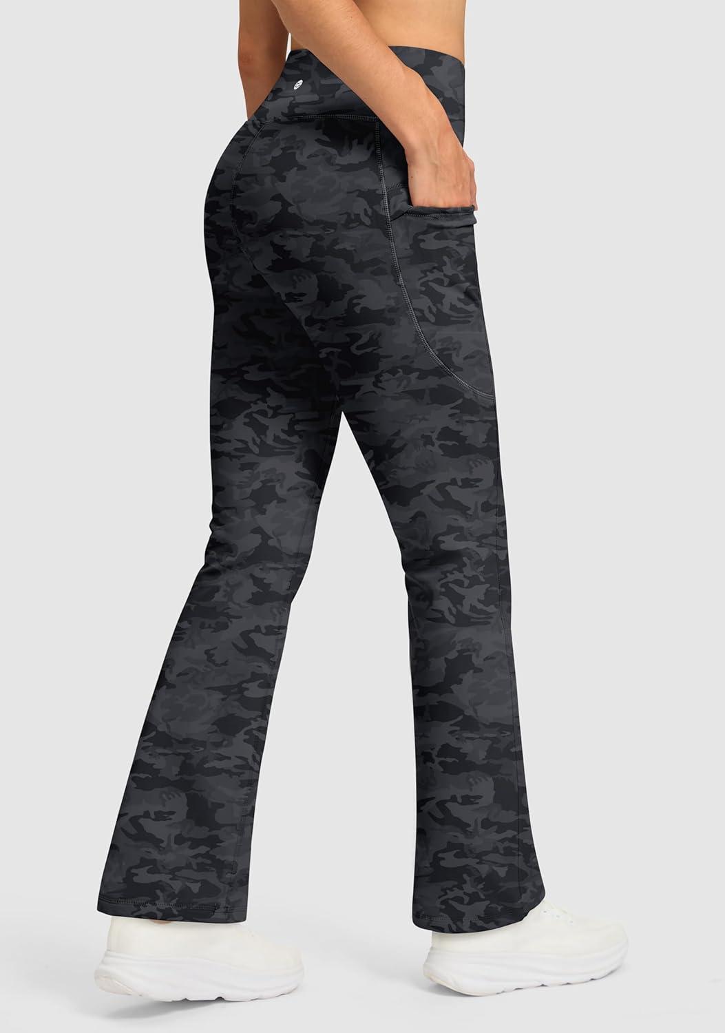 G Gradual Fleece Lined Leggings for Women No Front Seam High Waist Thermal Flare Pants with Pockets for Winter, Hiking, Yoga(Black Camo)