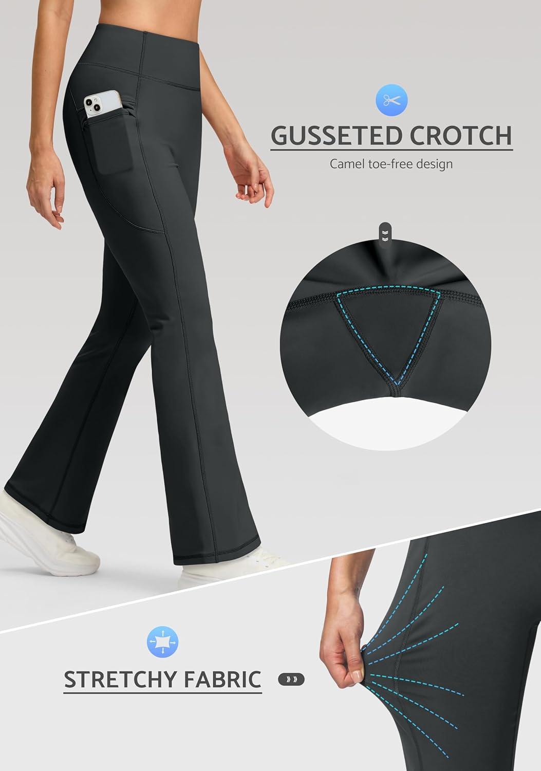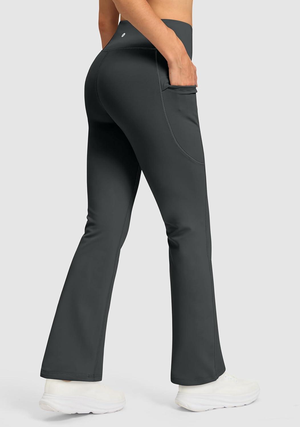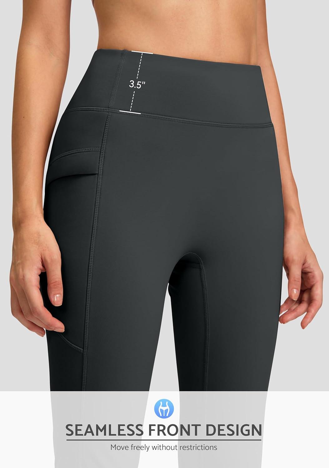 G Gradual Fleece Lined Leggings for Women No Front Seam High Waist Thermal Flare Pants with Pockets for Winter, Hiking, Yoga(Dark Grey)